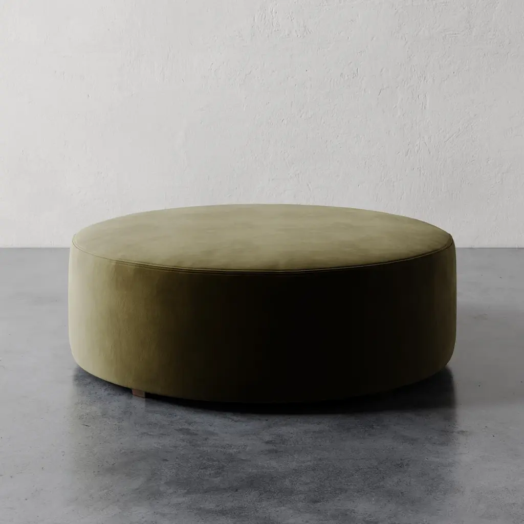 The Fabien 48" Round Ottoman expands on the clean, versatile design of the original with a more generous scale—perfect for use as a coffee table ottoman or extra seating. Its minimalist form allows it to seamlessly blend into a variety of interiors, while the larger surface offers space for trays, books, or relaxed lounging. Fully customizable in a wide range of fabrics, including COM, the Fabien becomes a canvas for bold pattern or refined texture, serving as the visual anchor—or jewelry—of the room. Thoughtfully scaled and endlessly adaptable.