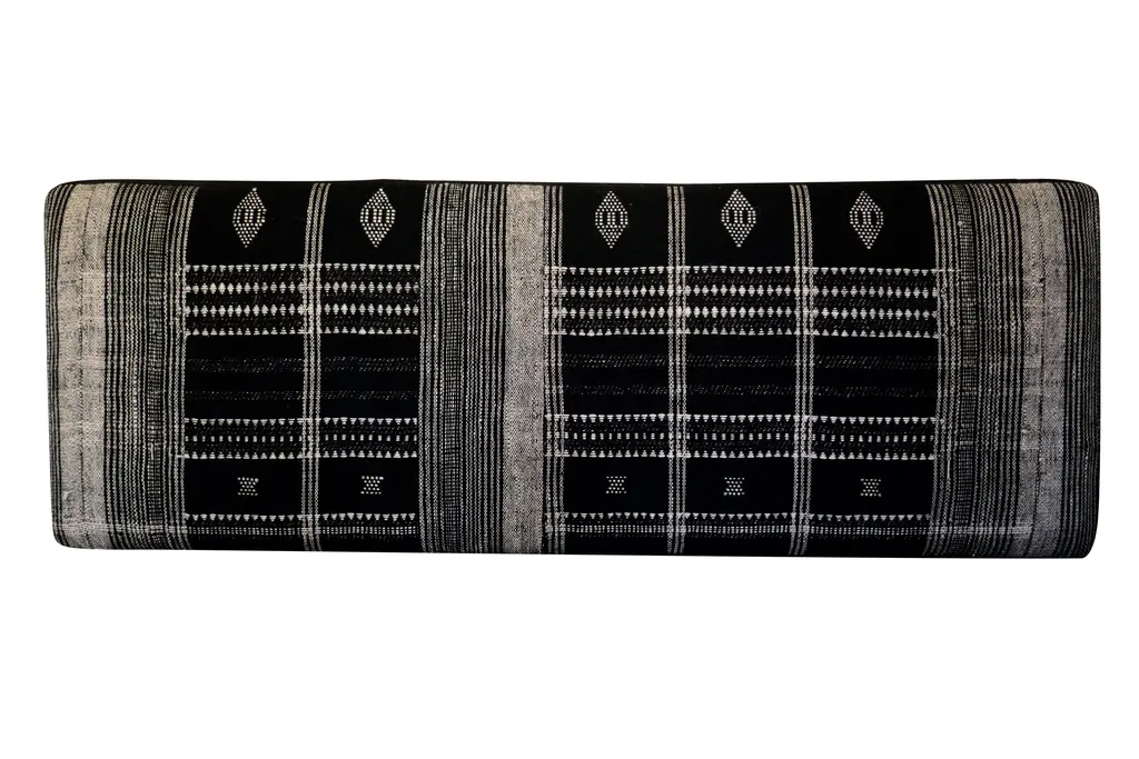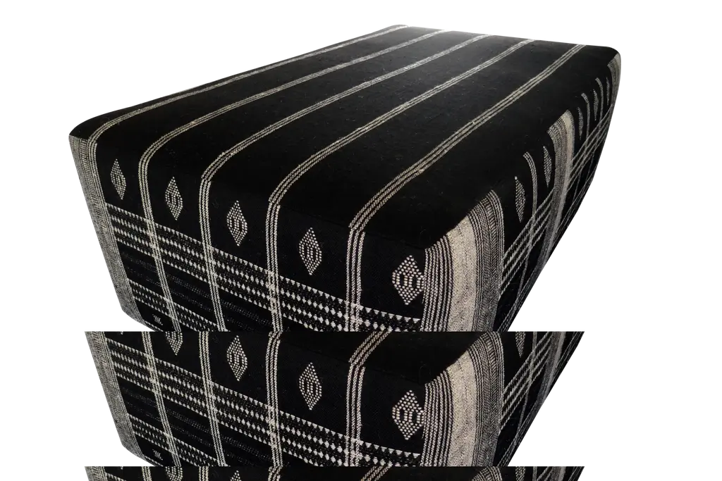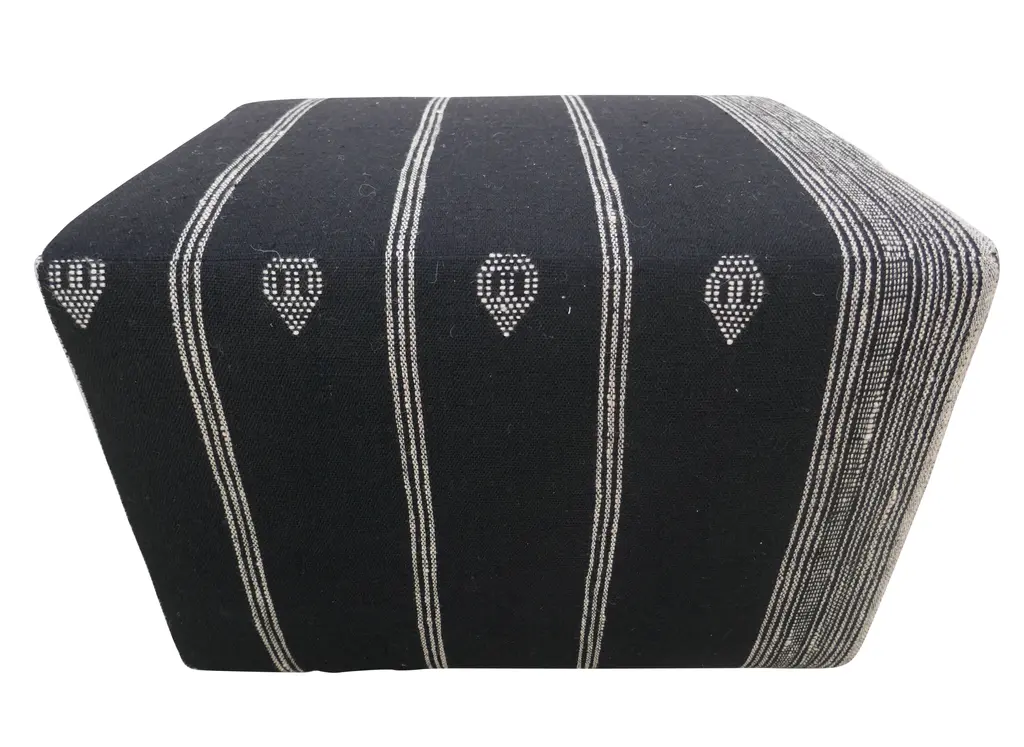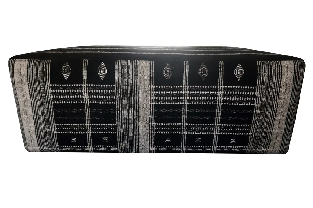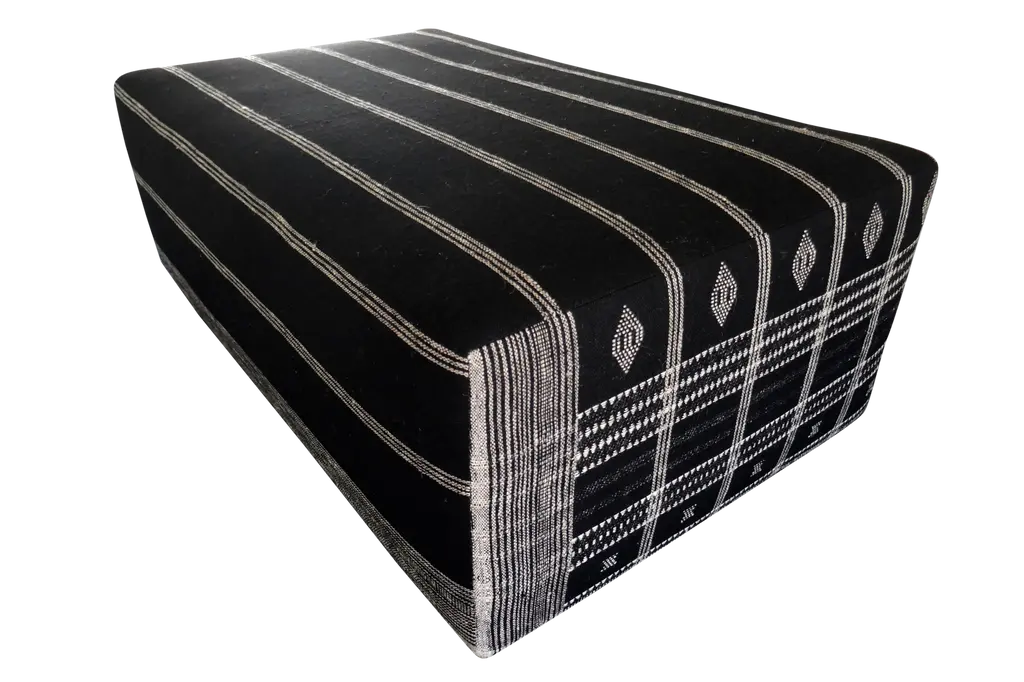 Outstanding large cocktail ottoman, impeccably upholstered in authentic Global hand-spun organic pure wool. Embroidered intricate motif in contrasting neutral tone. Wooden inner-frame, fully cushioned with soft & safe edge's and corners. Created by Fragments Identity in California!