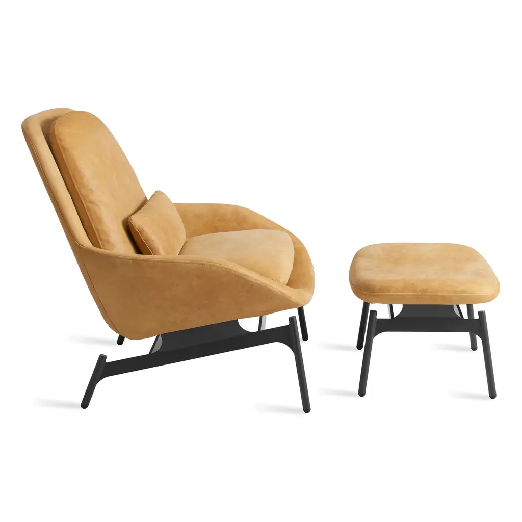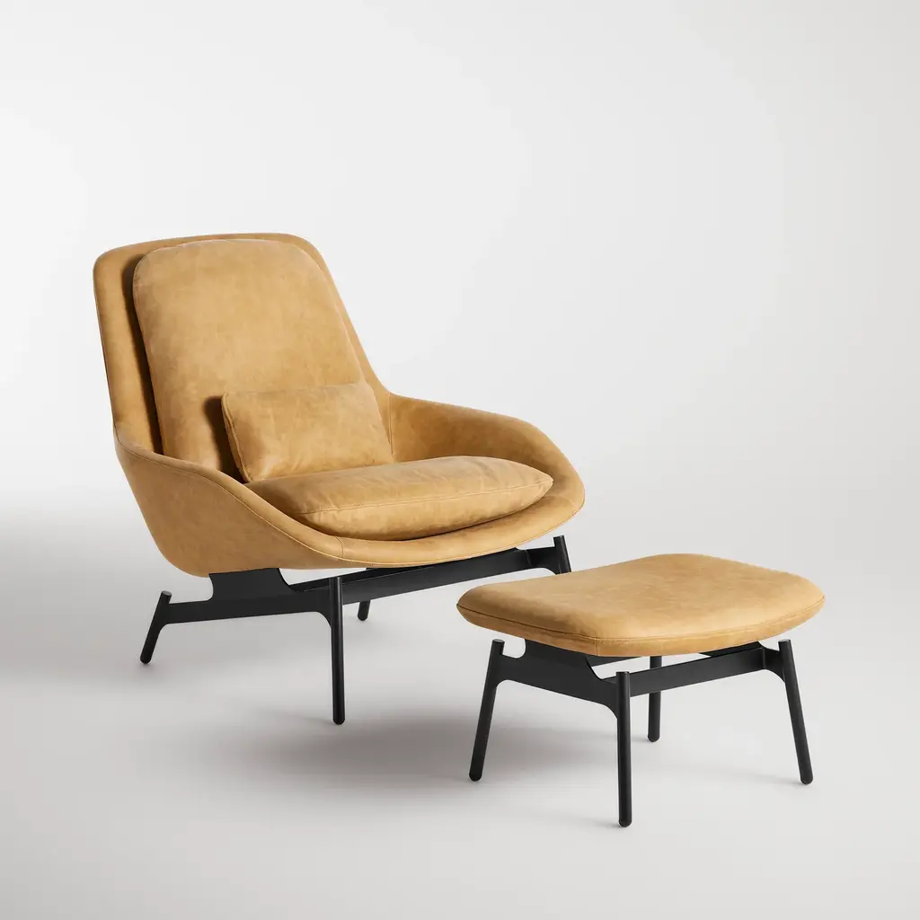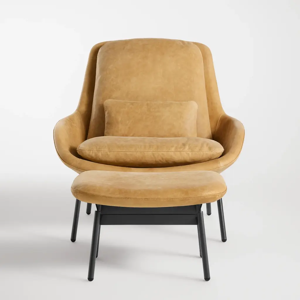 The perfect companion for our Field Lounge Chair, a “just-right” padded upholstered cushion is cradled by sculptural steel legs.