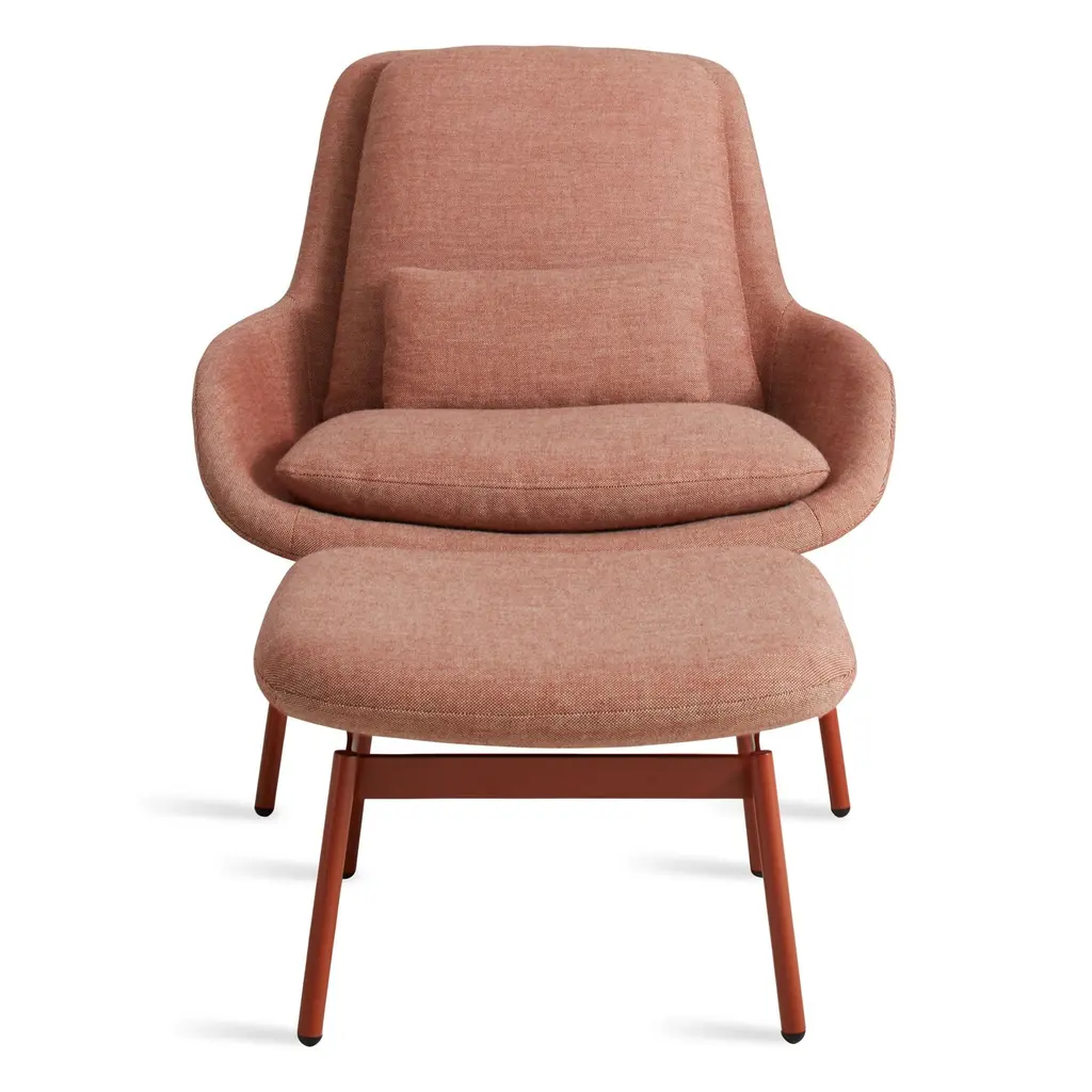 The perfect companion for our Field Lounge Chair, a “just-right” padded upholstered cushion is cradled by sculptural steel legs.