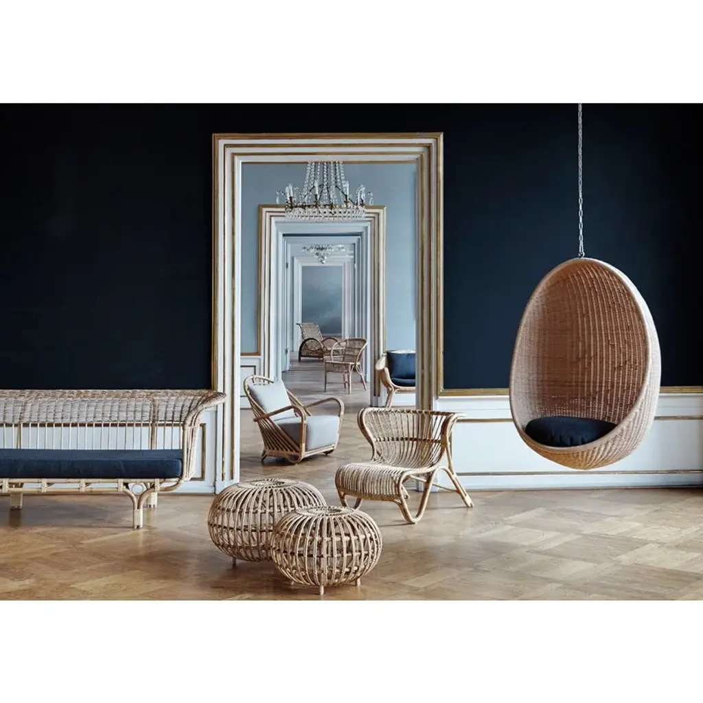 Sika-Design's Franco Albini ottoman was designed by the world-famous Italian architect and designer Franco Albini. The ottoman is made of synthetic rattan and characterized by a generous and rounded shape with a light, airy touch. The Exterior collection transforms Sika-Design’s classic rattan designs into attractive and maintenance-free outdoor furniture. Made from strong Alu-Rattan aluminum and synthetic ArtFibre weave, the Exterior furniture can be used in the garden, patio and balcony all year round. The lightweight and durable material closely resembles the organic character of natural rattan.
