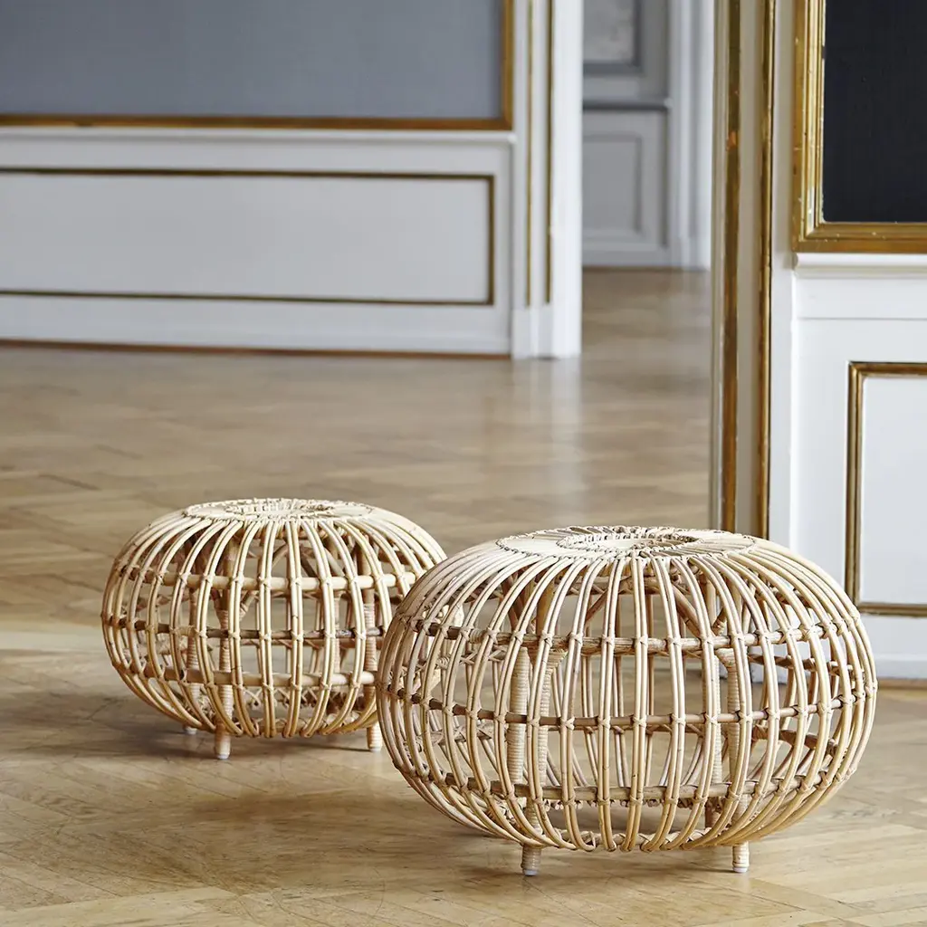 FA-55-SU Ottoman is designed by Franco Albini and is handmade in Indonesian sustainable rattan. The Ottoman is made in the colour nature, which is original and suitable for every occasion. The fine bindings are made by skilled wicker workers on a frame of rattan. The Ottoman contributes with a natural element in the living room or in a summer cottage, but also adds atmosphere to any hotel lobbey. The Ottoman can be purchased in two sizes Ø 55 cm or Ø 65 cm. Franco Albini (1905-1977) was both an architect and designer and had great succes in the 1950s. Producing a wide range of renowned furniture designs, including Rack Systems and Chairs Margherita and Gala. They are currently standing on MOMA in New York, as well as architectural works like La Rinascente in Rome, properties and Metro stations in Milan. He managed to reconcile traditional Italian crafts with modernist and minimalist aesthetics. He has, among other things, had produced its furniture design by Italian Cassina and Poltrona Frau. Franco Albinis Ottoman from 1951 is an original, sculptural and elegant piece of furniture that can contribute to different interior design needs with many possibilities. The timeless designs in rattan fits well with current developments and demands for sustainable furniture.