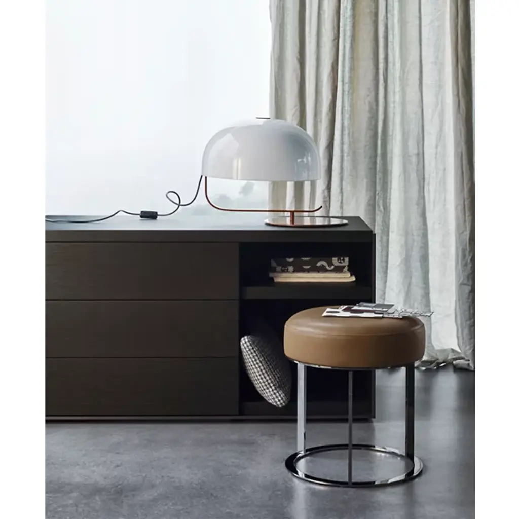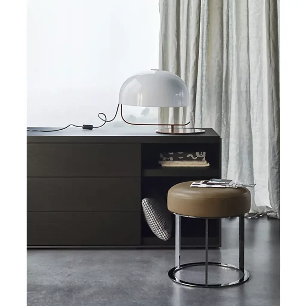 The Frank Ottoman from B&B Italia is an enduring modern design, serving either as a visual accent or a convenient resting surface. This ottoman’s ultra-refined construction highlights its designer Antonio Citterio’s focus on essential forms. A steel cylinder gives the piece a strong base that’s light enough to easily rearrange in the room. The rounded cushion above provides comfortable seating.