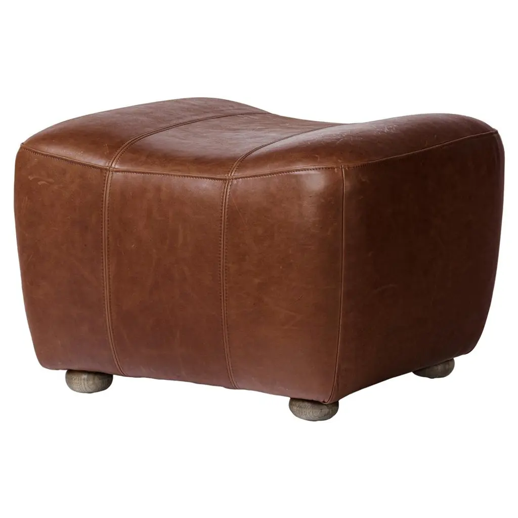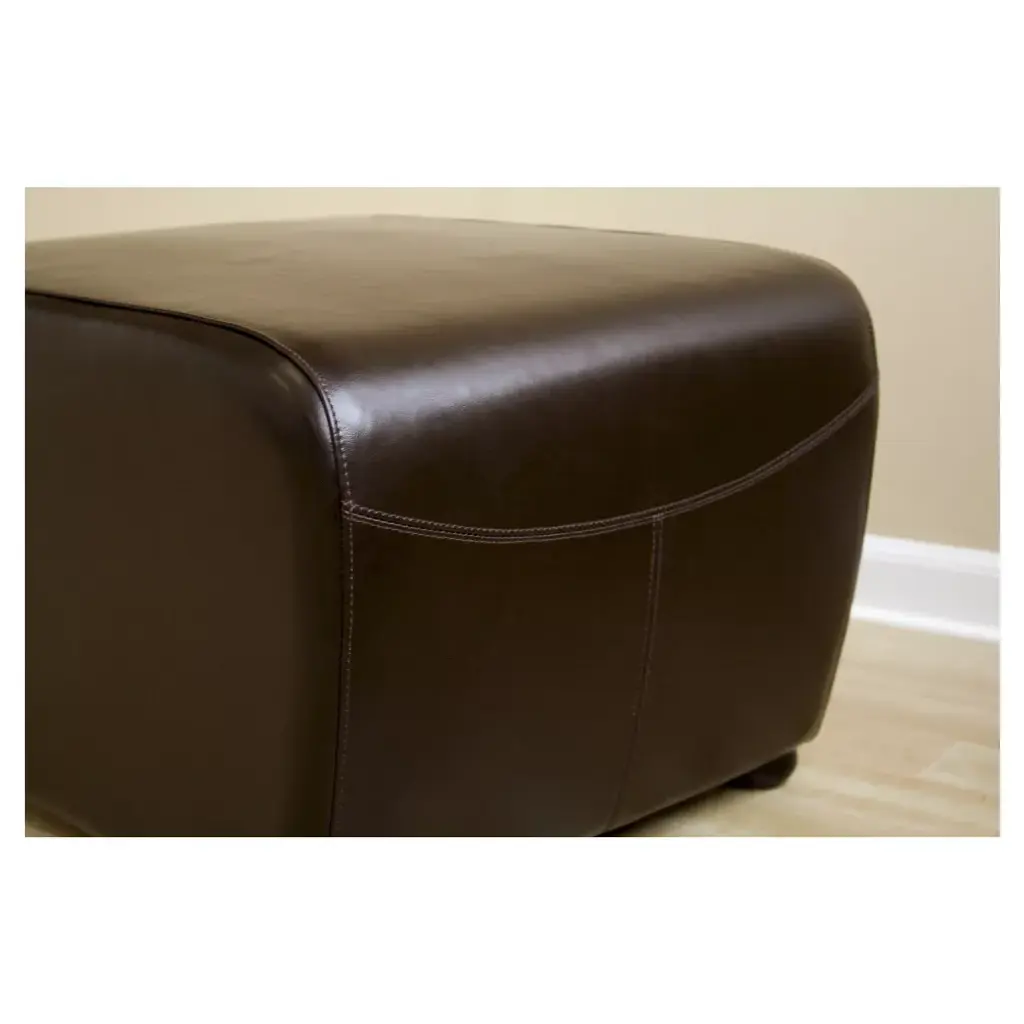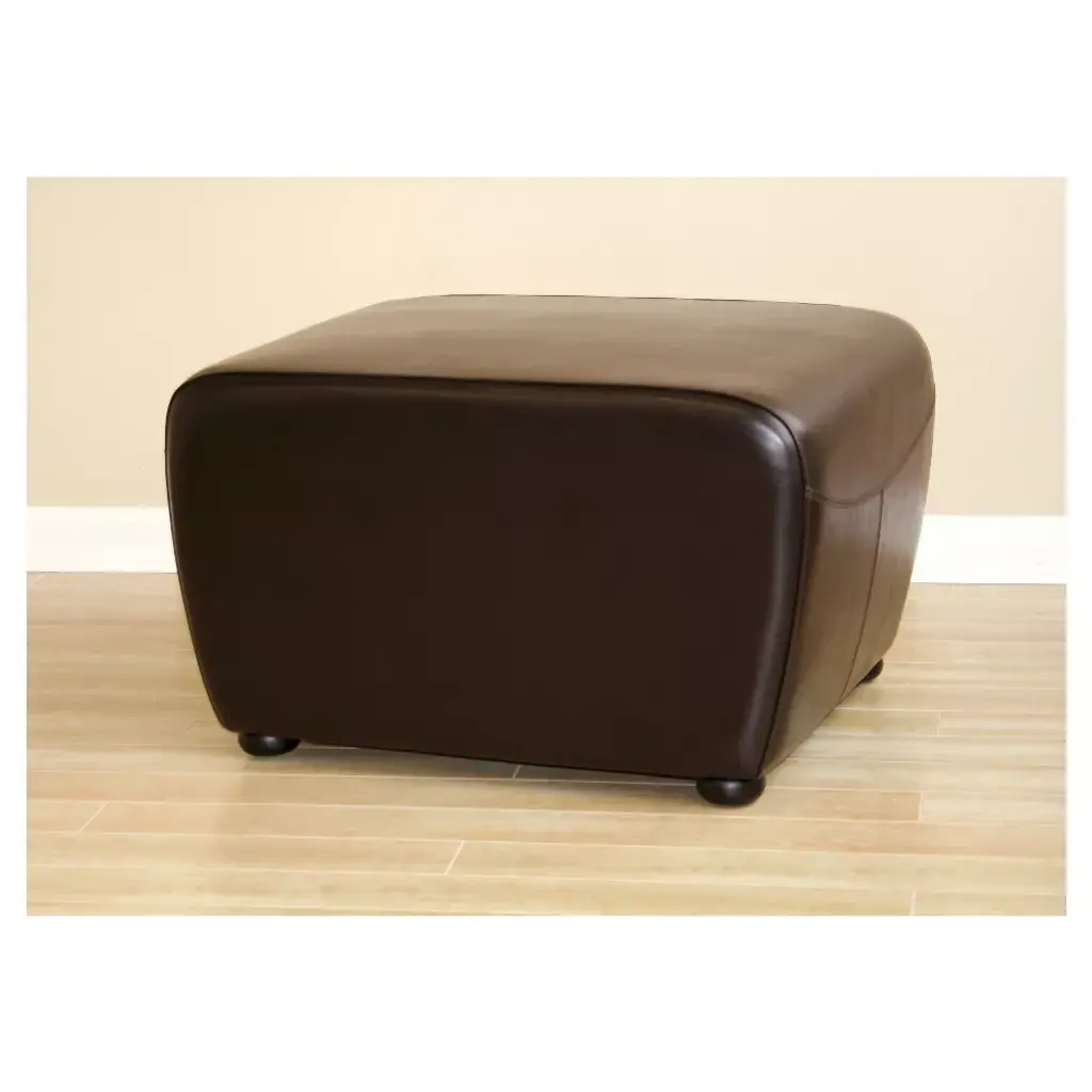Full Leather Ottoman With Rounded Sides Dark Brown - Baxton Studio: Faux Upholstered, Wood Frame, No Assembly Required