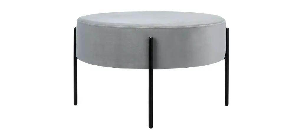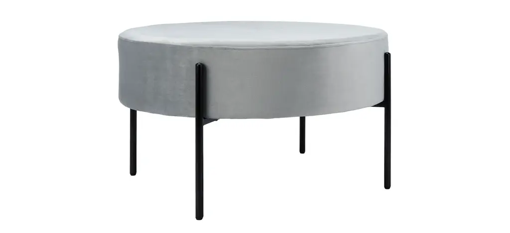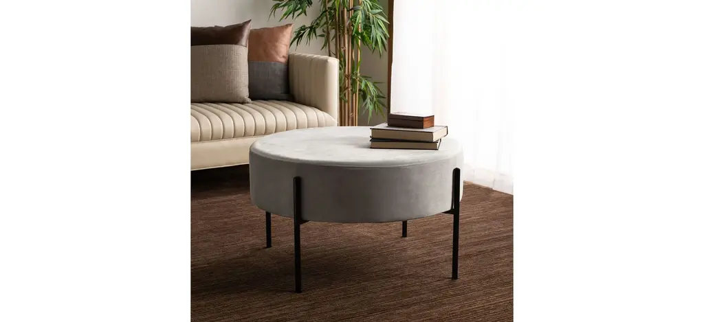 Ideal as both a coffee table and a delightful perch to stretch out and relax, this Fulton Round Cocktail Ottoman is perfectly styled to bring a subtle touch of luxury and glamour to the living room. Fulton's sleek lined black matte legs and plush grey velvet adds classy color and uptown style to room decor.