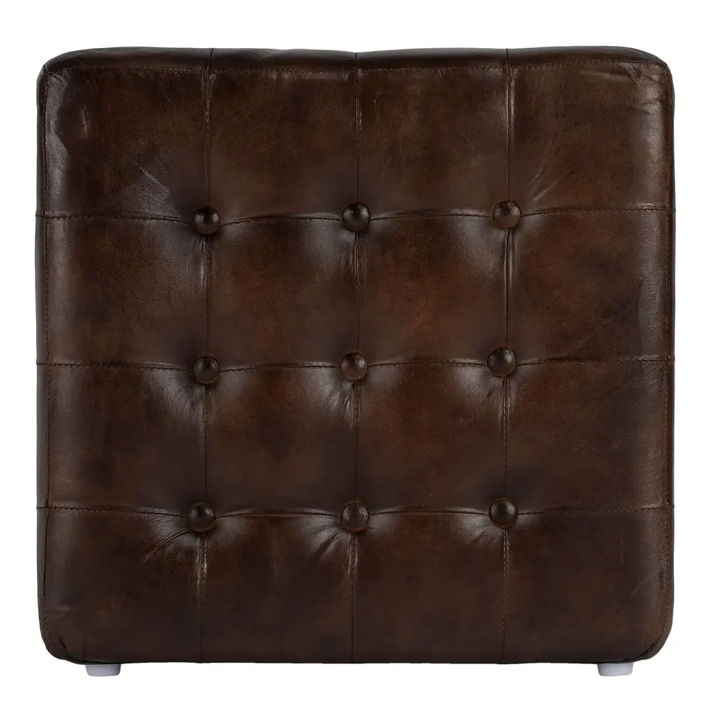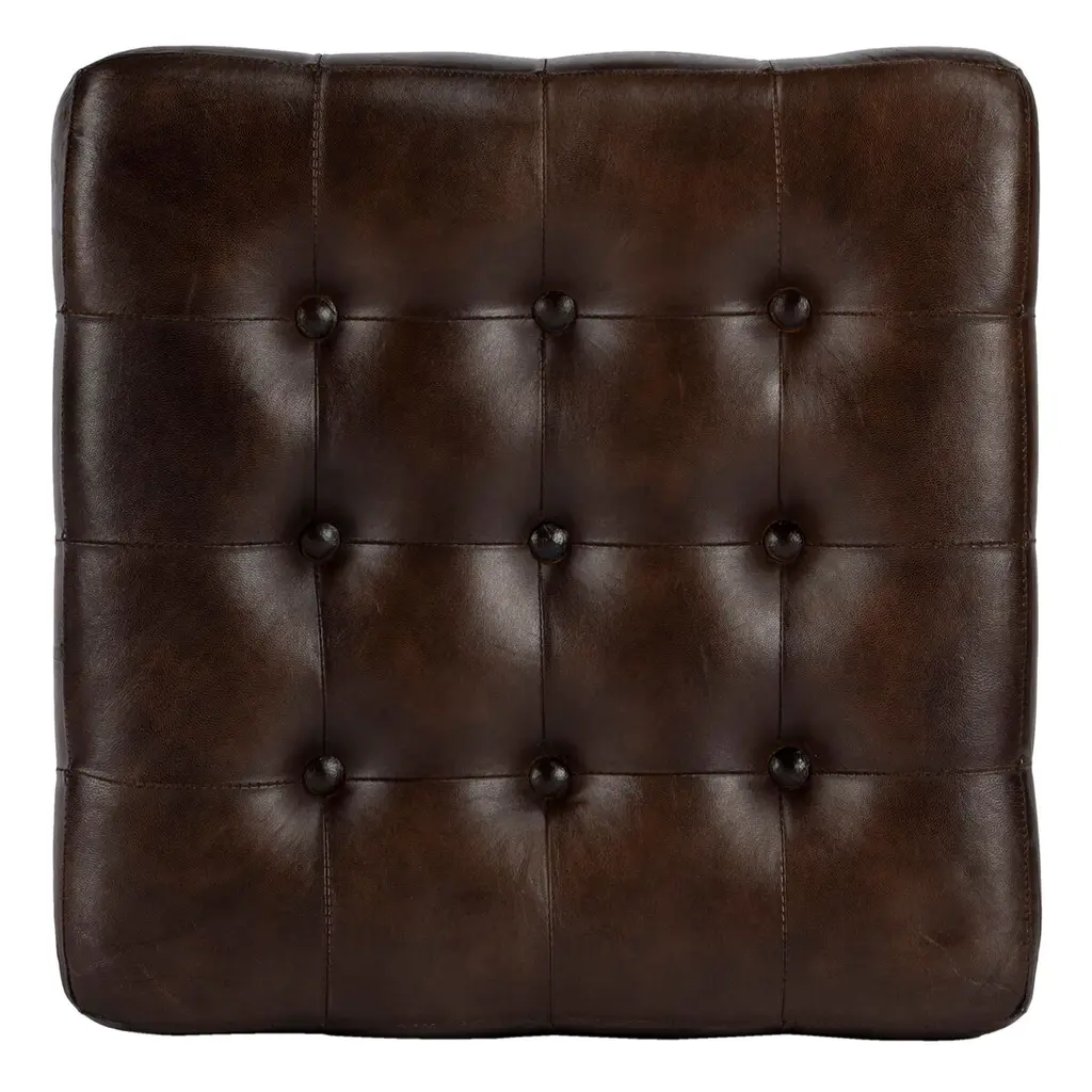 Gabriel Button Tufted Leather Ottoman
