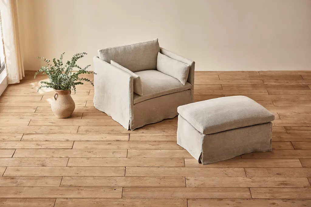 A sharp, slim shelter arm with concise proportions and an unexpectedly squishy plop. Don't let the contemporary looks fool you—Gabriel too is a softy at heart.