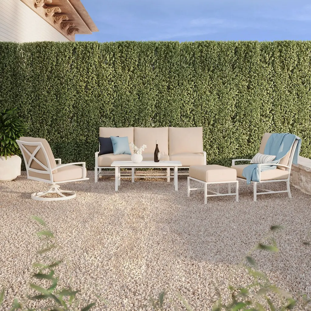 The Galtier Ottoman is crafted from high-quality, low-maintenance aluminum designed to endure over time. This ottoman features a plush 6" cushion, enveloped in a contemporary channel frame. It boasts a fully welded, scratch-resistant powder-coated aluminum frame, weather-resistant high-resiliency foam cushions, and commercial quality construction.