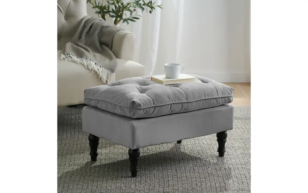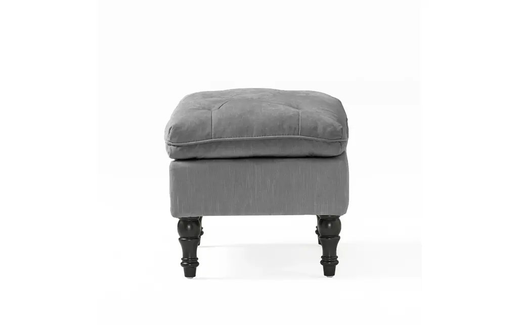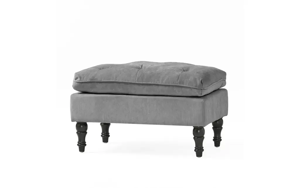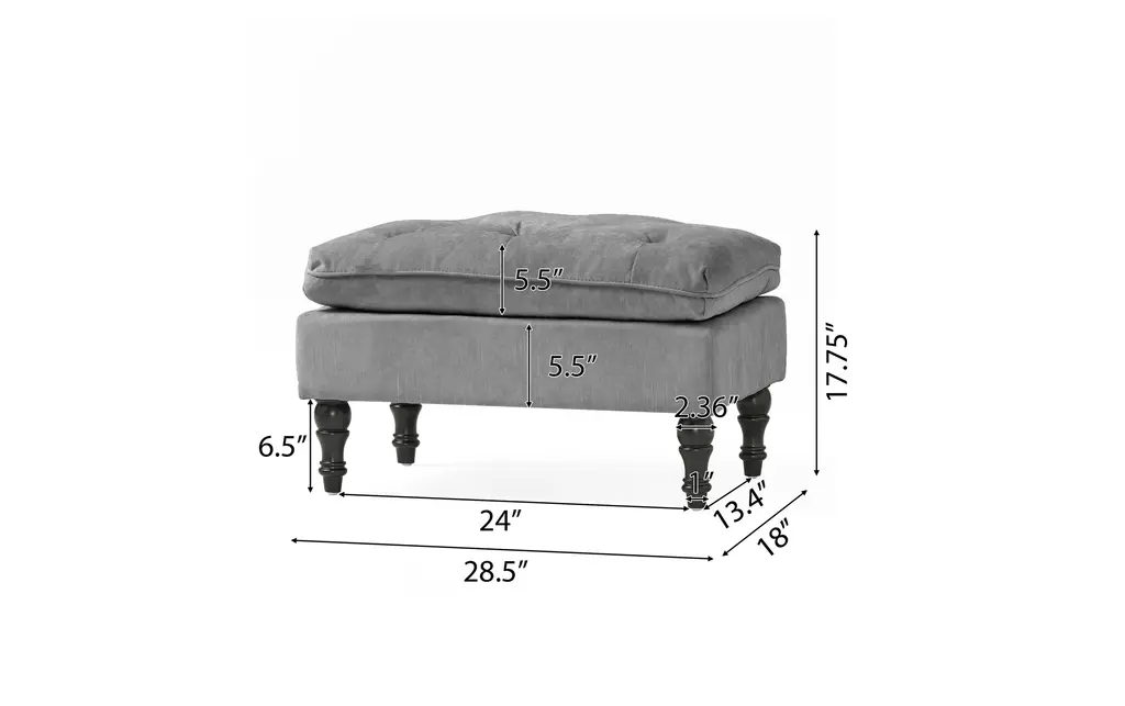 Add a unique flair to your interior space with a little extra padding and charming style. Featuring a plush pillow top that is accented with delightful button tufting, our ottoman is the perfect addition to any living room. This is finished with lovely turned legs and inviting upholstery, giving your home an elegant touch. Whether you are propping up your feet after a long day or are in need of extra seating for your guests, this lovely ottoman has you covered.CONTEMPORARY: Our ottoman has the look, feel, and design of contemporary style with its plush pillow top, piped edge, turned legs, and button-tufted diamond stitching. With a classy and functional design, this sofa will give your room an instant upgrade in style and comfort.BUTTON TUFTED DIAMOND STITCH: The button-tufted stitching in the top offers an extra touch of sophistication that enhances its contemporary design. The diamond stitch pattern adds a bit of texture without sacrificing any comfort.UPHOLSTERED: Our ottoman is generously upholstered, giving any room a refined appearance. This provides a smooth, immaculate texture for this piece as well as a plush top for comfortable seating.DIMENSIONS: Choose an accessory that is the perfect size for you and your furniture. This ottoman is 28.50" W x 18.00" D x 17.75" H. You will love how much your space can transform with the simple addition of this charming ottoman.ASSEMBLY REQUIRED: Some assembly is required for this ottoman. All of the instructions and tools needed for assembly are included.Includes: One (1) OttomanMaterial: FabricComposition: 83% Polyester and 17% NylonLeg Material: BirchMultiple Color OptionsLeg Finish: EspressoAssembly RequiredDimensions: 18.00 inches deep x 28.50 inches wide x 17.75 inches highWeight Capacity: 150 lb