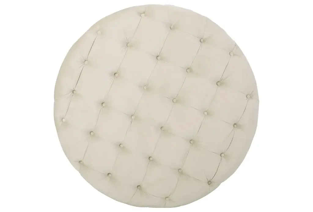 Gdf Studio Limosa Round Tufted Velvet Ottoman, Beige