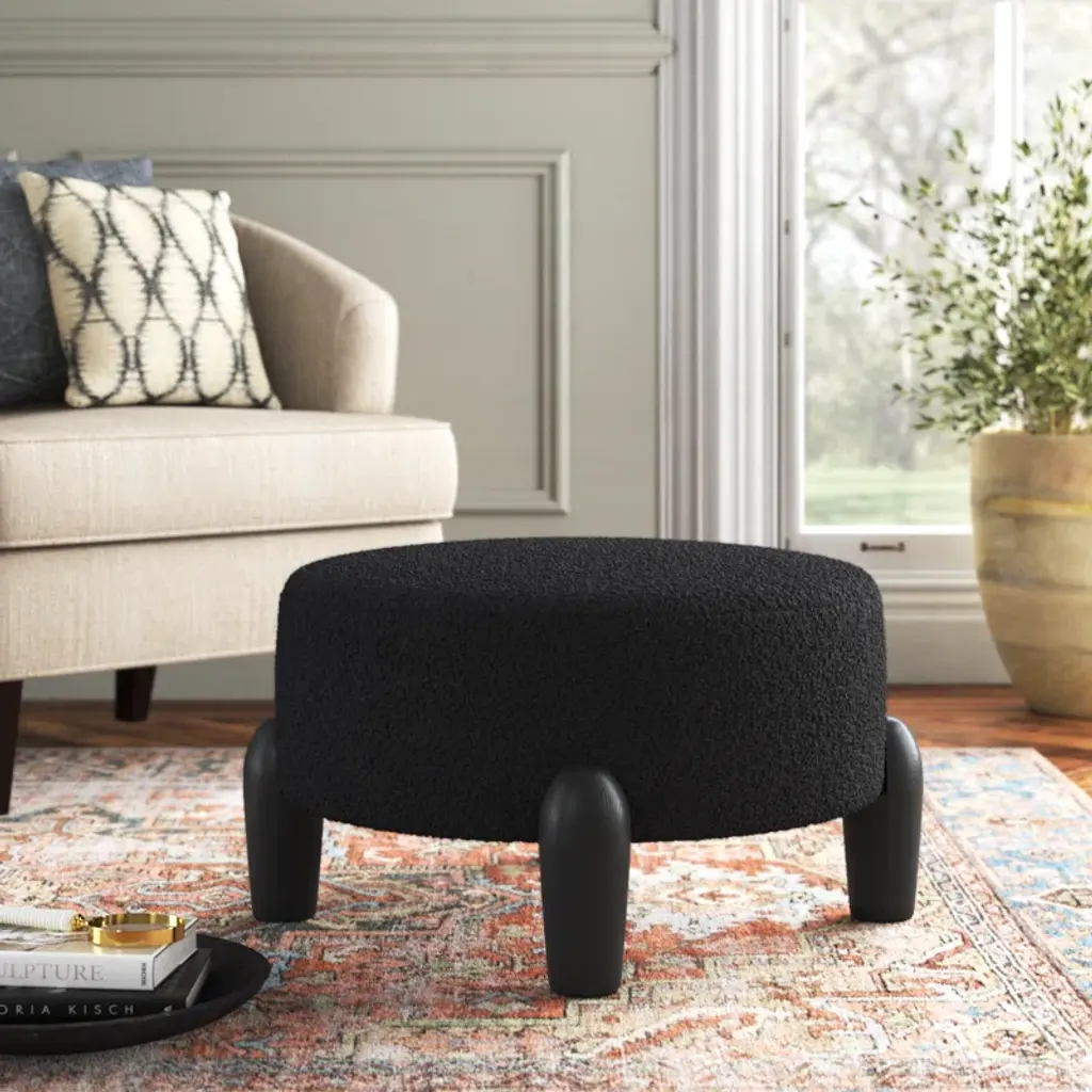Add comfort and convenience to your home with our Geddes ottoman. Inspired by the simplicity and practicality of the Scandinavian design, our ottoman features a perfectly round and refined cylindrical body. It gracefully sits within subtly curved ashwood legs. Upholstered in faux lamb wool with a classy shade, our ottoman perfectly complements its neutral-finished legs to bring a welcoming warmth to your living space and family rooms. From a comfy footstool, our ottoman can offer an extra seat for entertaining guests.