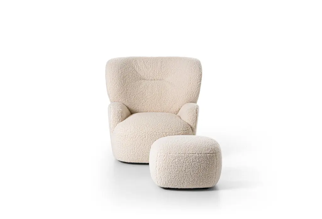 Unique materials and craftsmanship are evident in the LOLL 08 pouf: produced with a rounded shape, it has a solid wood structure, with springing by elastic belts with a high rubber component. A different way of conceiving comfort, the LOLL 08 pouf has a seat made of high-density polyurethane foam in different densities, and a removable cover.Ottoman, upholstered with polyurethane foams, removable coverAdditional Information:Material: Upholstery, foamUpholstery: Polar Cat. DDimension: 60 W x 50 D x 39 H cmAvailable in other upholstery options: Cat. I, Cat. H, Cat. B, Cat. C, Cat. EAvailable in other structural optionsQuick Ship: Loll 08 with removable cover in polar bear. Available with shipping the week after the order receipt, upon confirmation of availability.