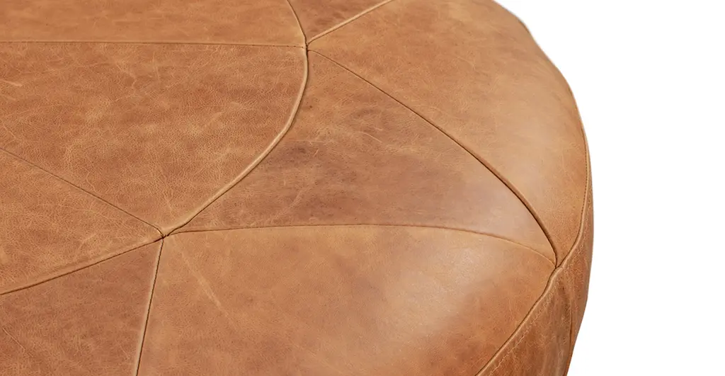 Showcase the Gio Ottoman in your living space for an exquisitely functional piece that is truly one of a kind. Each is crafted with genuine Italian tanned full-grain leather upholstery that’s minimally processed to accentuate the hide’s natural character, bumps and all, for a unique look that patinas well with age. A seamed geometric design captures the eye while its high-density foam cushion with feather down top layer makes this ottoman a luxurious spot to put your feet up. Its rounded exposed wood frame and tapered legs with protective foot pads offer a modern edge, while walnut stain finish brings richness to any room.