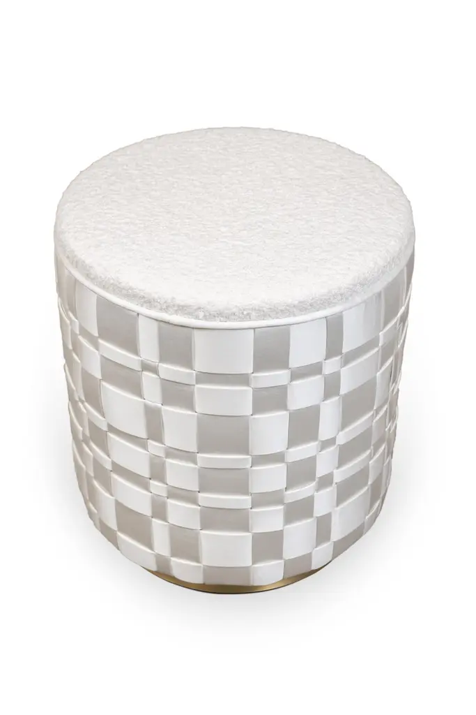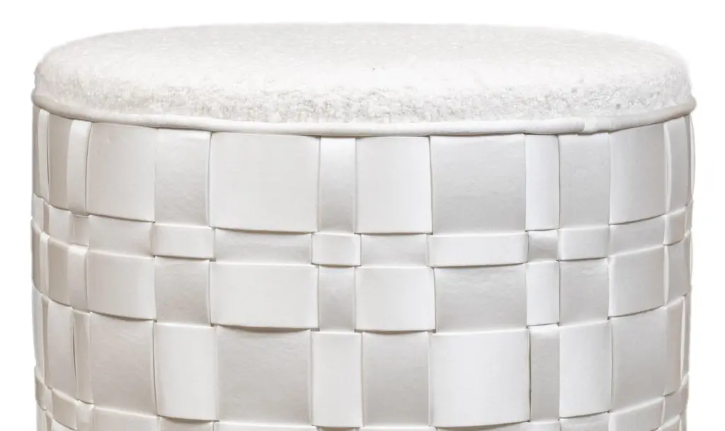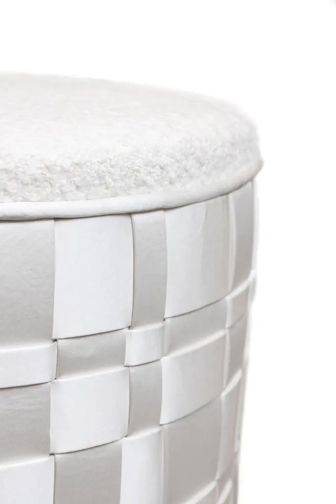 Grace Ottoman by Memoir EssenceDimensions: D 45 x W 45 x H 50 cm.Materials: Brushed brass, bouclette fabric M TP Olympie 71396/00 1 and satin fabric DG Tiber F1736/0 1.Also available in client's fabric. Please contact us.Graciously handmade by our upholstery artisans, Grace ottoman presents a blend of beautiful satin ribbons interlaced and bouclette top, supported by exquisite brushed brass base. An haute-couture upholstery product, a must-have to your unique products. You can use this piece to enhance any area of your residencial or hospitality projects.Memoir Essence Interiors has been writing its memoirs day by day, inspired in every detail lived through a feminine world, this world brings the most delicate imaginary. Jewelry, fashion, architecture, music, art and materials are Memoir’s inspirations to materialize a collection of design pieces of furniture, upholstery, lighting and accessories.The use of noble materials like marble, brass, veneers, gold and silver leaf, Swarovski crystals as other decorative and fine materials, combined with handwork techniques as casted brass, hand-whickered fabric ribbons, gold leaf appliance, marble cutted and puzzled pieces, provide the needed essence to tell memoirs through the designed pieces and the interiors they fulfill.This collection mostly handmade and focused on details and material nobility is made in Portugal, bringing handwork techniques that are part of Portuguese history, applied in a current and differentiated way, delivering timeless pieces to your special projects. Acquire Memoir is the opportunity to travel through the feminine essence over design and experience a unique “memoir” of timelessness and exclusivity.Writing is first chapter in 2016, after a journey of inspirational research, forecasting and design, Memoir made its first appearance at Maison et Objet, Paris.Since then Memoir is “writing” memories adding new materials, designs, techniques and appearances around the world, as in Paris, London or UAE.Memoir will continue this journey, always motivated by the inspiration possibilities in the many delicate details found in feminine world.Tell your memoires with this collection and be a memorialist yourself…