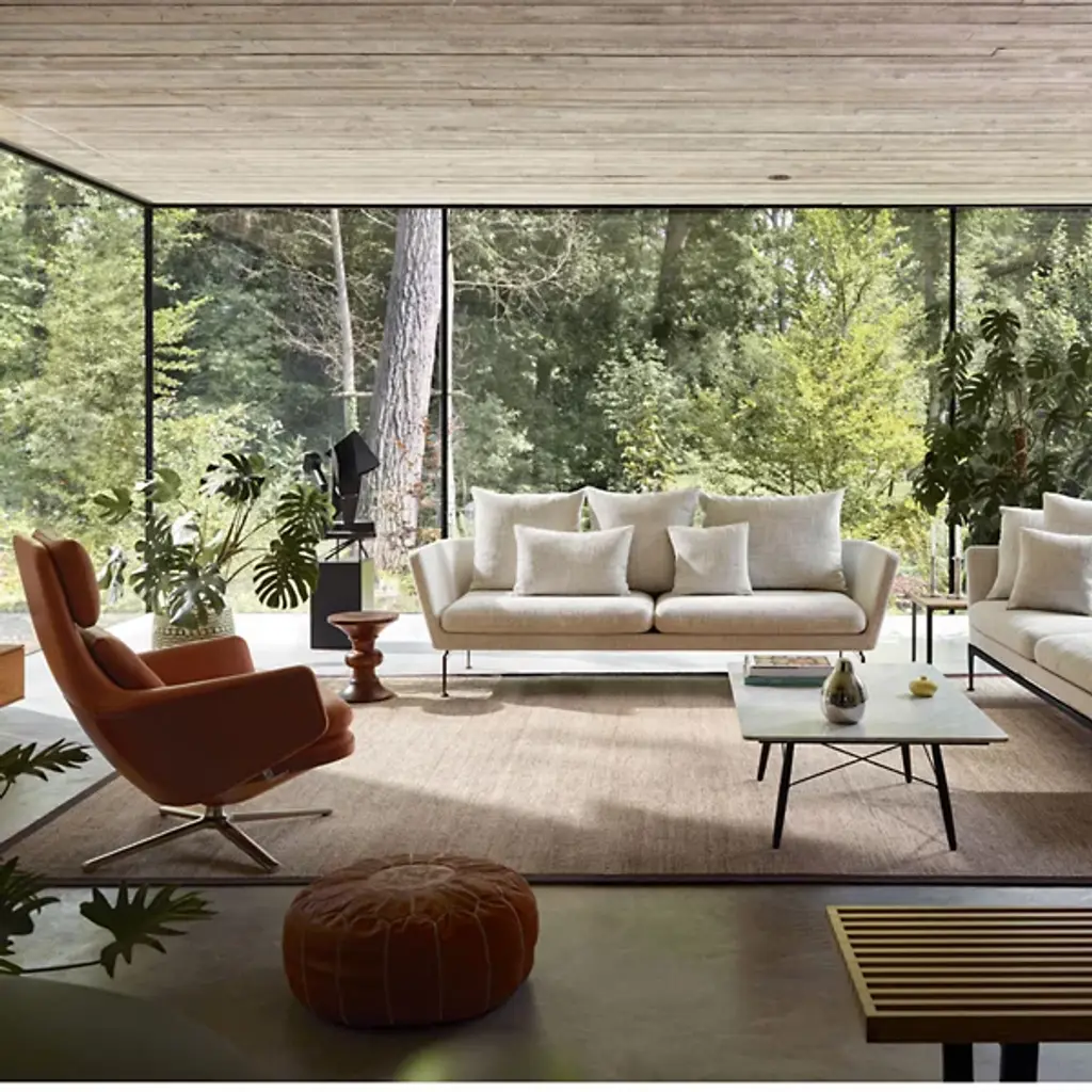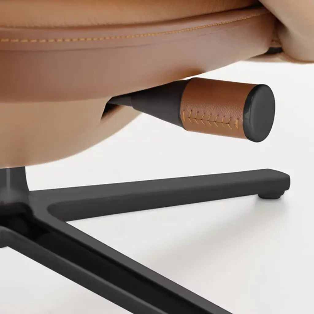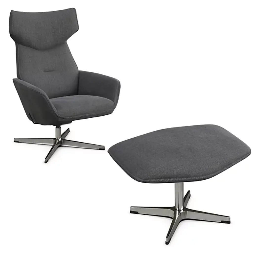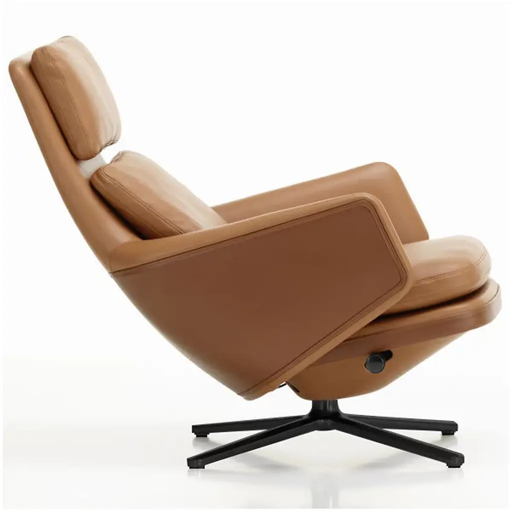 There’s no better name for the meticulously engineered, hugging design of the Grand Relax Lounge & Ottoman from Vitra. Designer Antonio Citterio’s pieces reveal his process of combining timeless shapes with high-quality materials. Here, Citterio rethinks the reclining chair with modern Italian sophistication. Both the ottoman and 360-rotatable chair share a sleek, multi-point base that accentuates the plump shapes on top. The chair hugs the body with a tall backrest and pair of armrests dressed in embossed leather. This sculpted shell can be locked in place and fine-tuned resistance-wise. Foam fills in the cushions of the ottoman and chair to create a rich, cozy surface from head to toe.