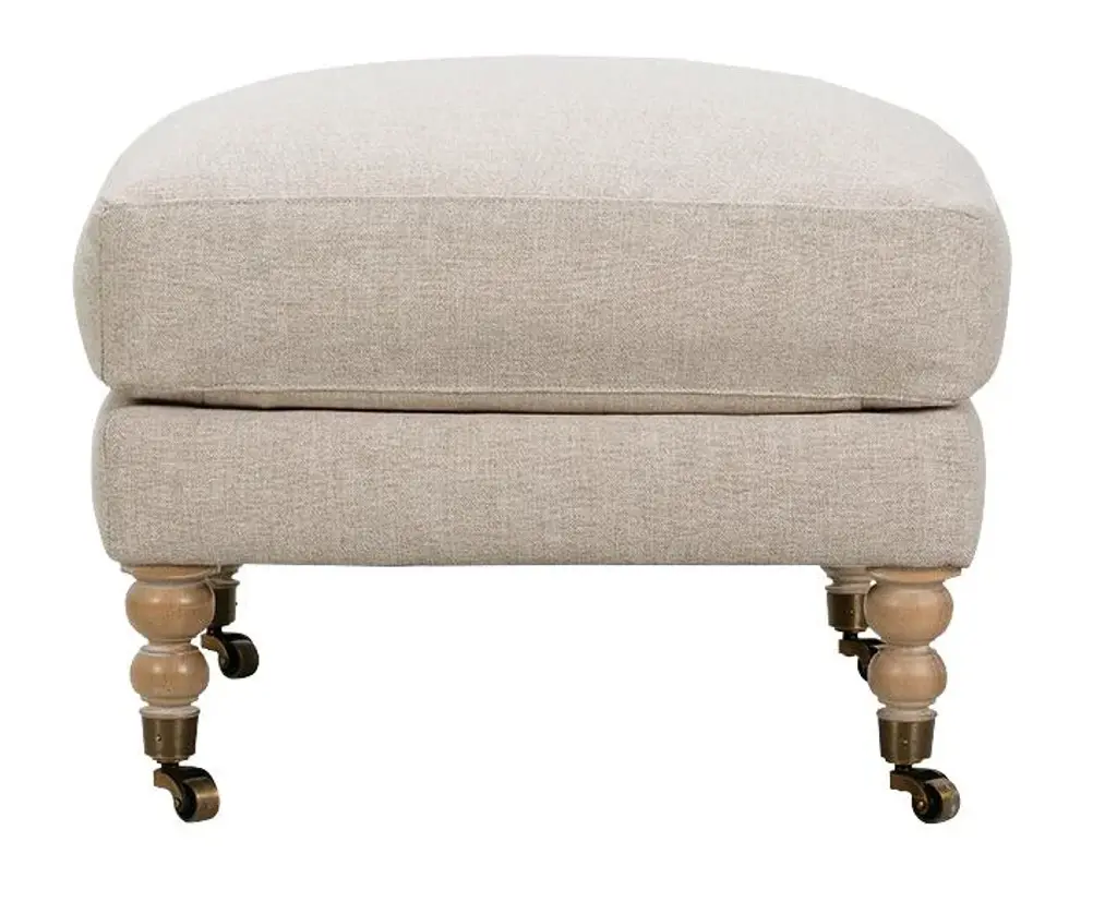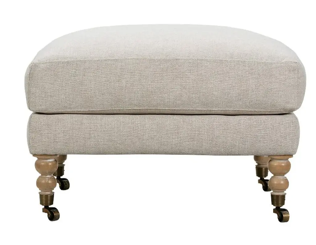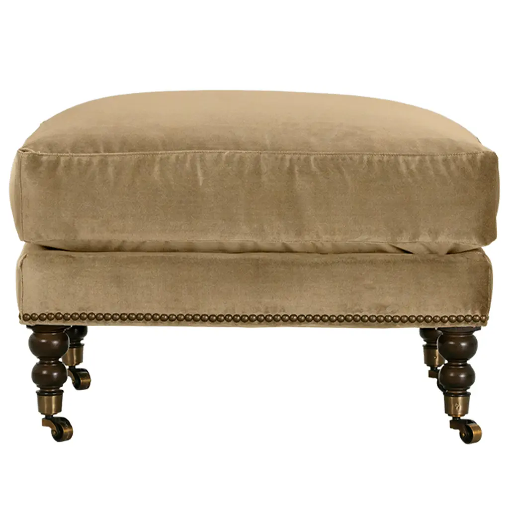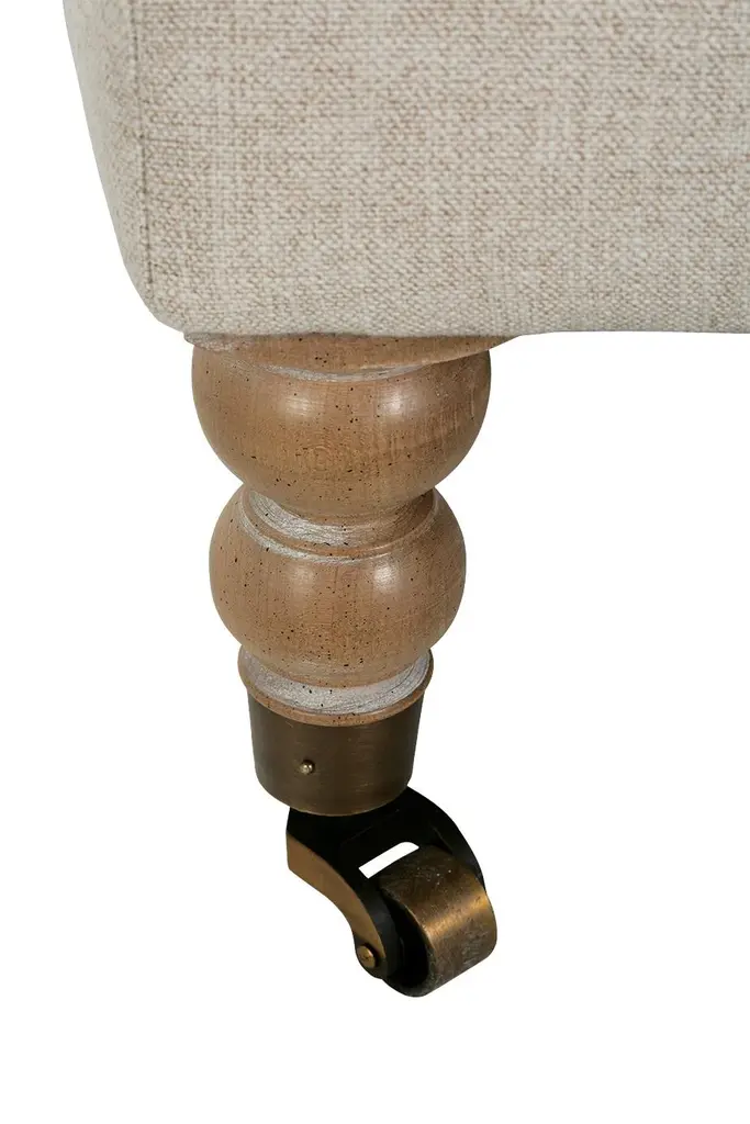 Looking for an upholstery collection with a nod to our vintage style and quality that will last for years to come? Look no further than our Greta collection. Every detail was designed to fit seamlessly into your home, from the clean yet comfortable lines of the frame to the turned washed oak legs with brass casters. Each Greta piece is meticulously hand-crafted to order in the U.S.A. using kiln-dried hardwood frames and the highest quality materials. And all that's offered in style and quality is matched in comfort, with a partial plant based high-density poly foam core wrapped in two softer poly foam layers for comfort, encased in a multi-channeled pillow-soft casing of poly and feather/down blend. This is sure to become the best seat in the house! Spot clean only with a water-free dry cleaning solvent. Pretest a small, inconspicuous area before proceeding. Do not saturate. DO NOT USE WATER. Pile fabrics may require brushing with a non-metallic, stiff bristle brush to restore appearance. Cushion covers should not be removed and dry cleaned. To prevent overall soiling, frequent vacuuming or light brushing with a non-metallic, stiff bristle brush to remove dust and grime is recommended. When cleaning a spill, blot immediately to remove spilled material. Clean spots or stains from the outside to the middle of the affected area to prevent circling. Overall cleaning by a professional furniture cleaning service only is recommended. Looking for fabric swatches? Please email swatches@chairish.com for availability