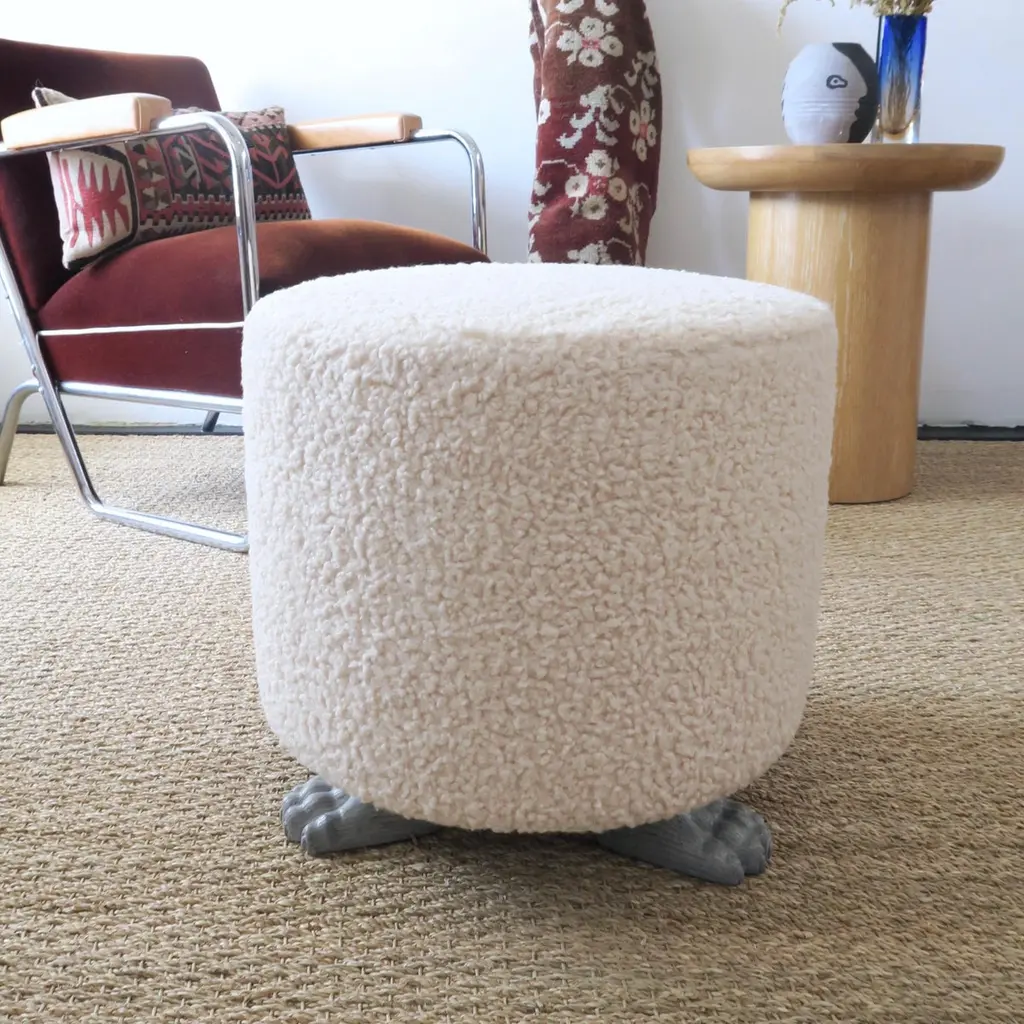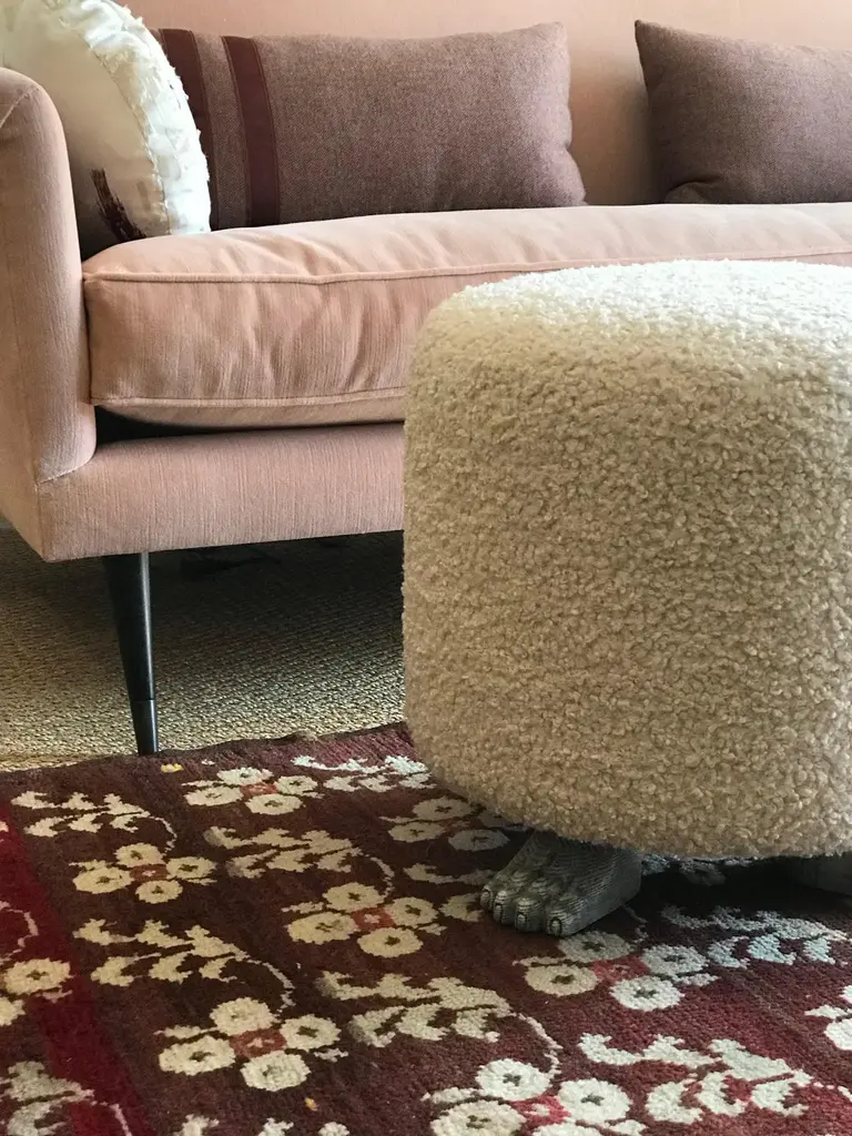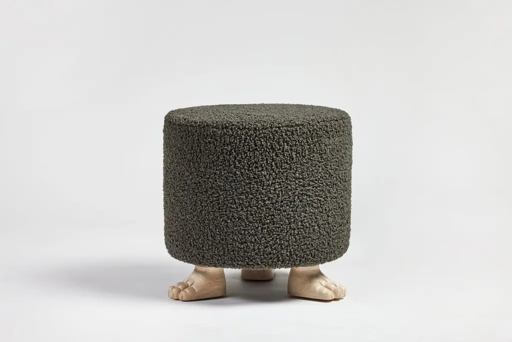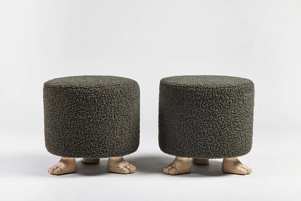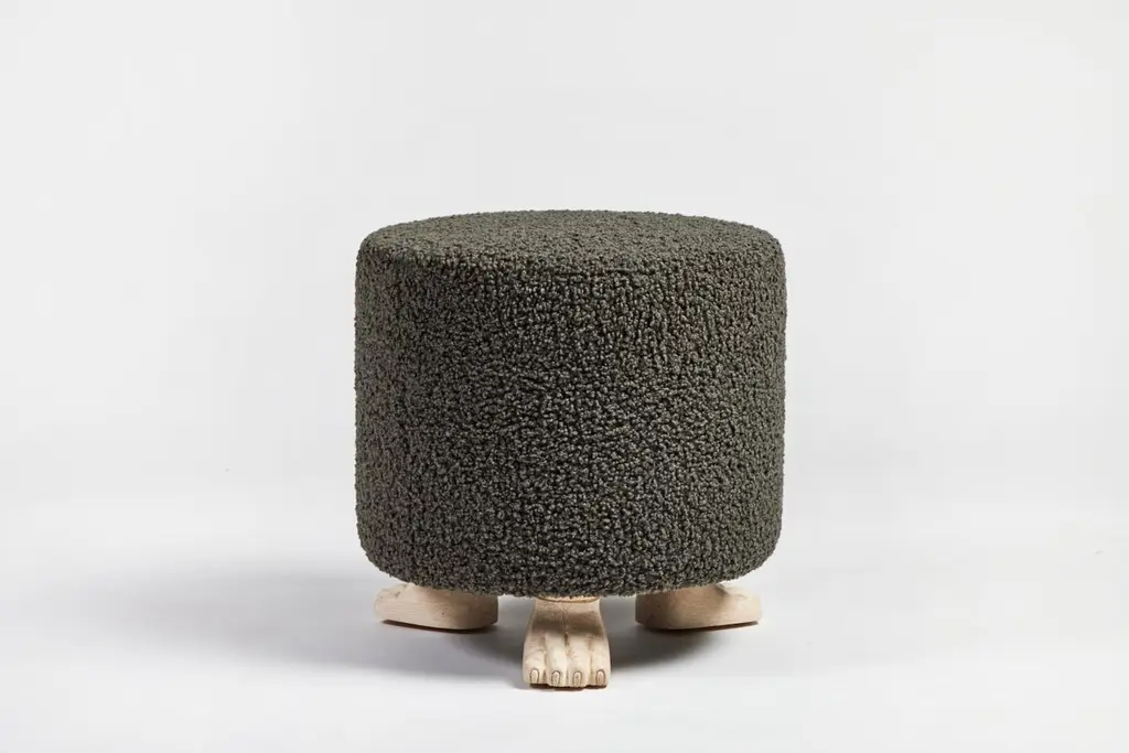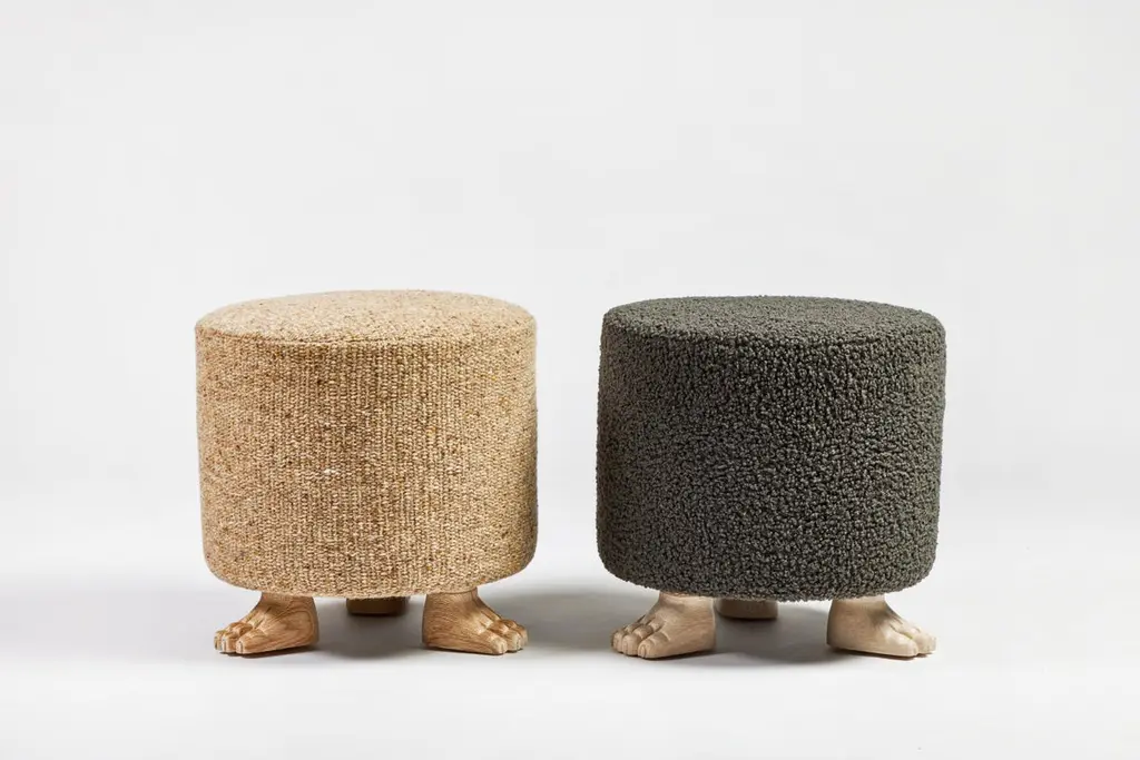 Hand Carved Oak Paw Feet Upholstered Lupa Ottoman By Martin & Brocket