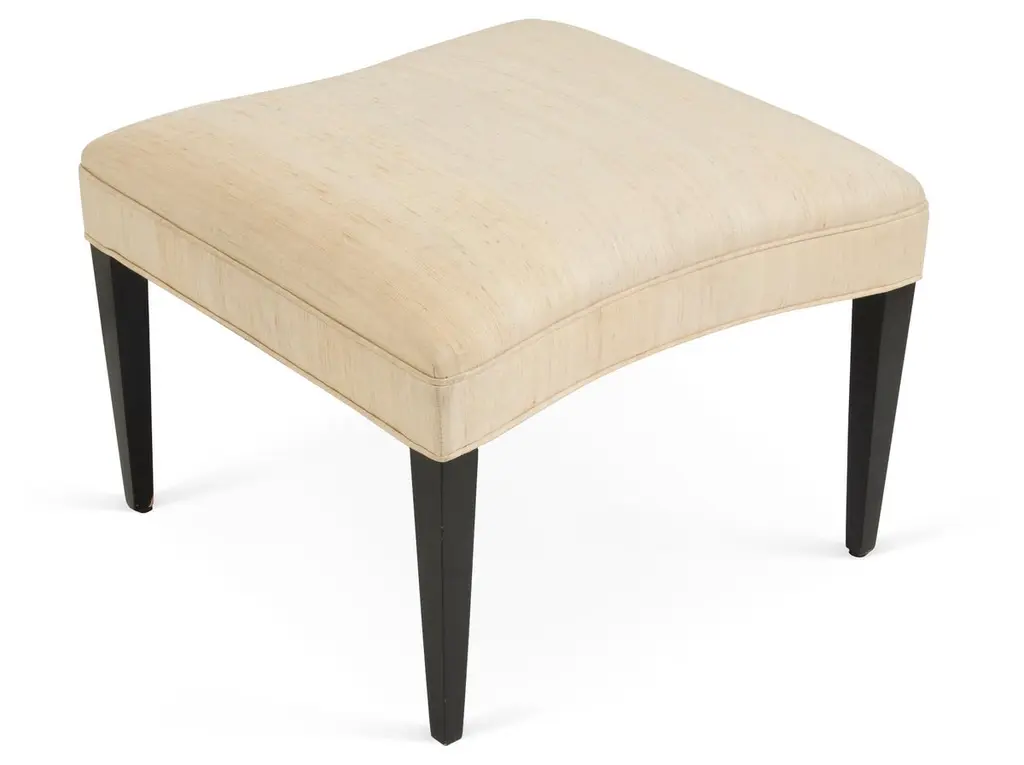 Handcrafted Upholstered Ottoman With Tapered Legs And Convex Sides