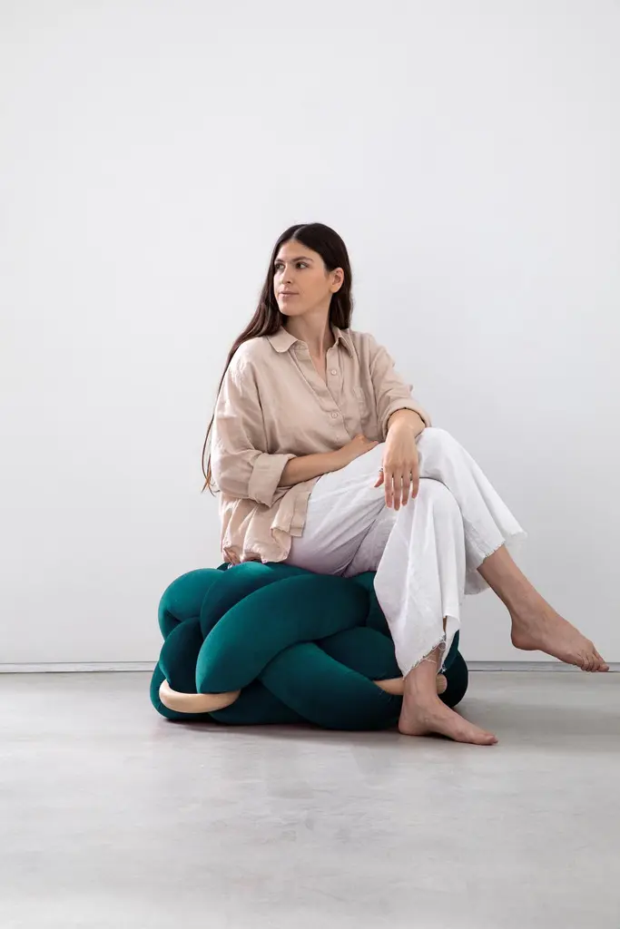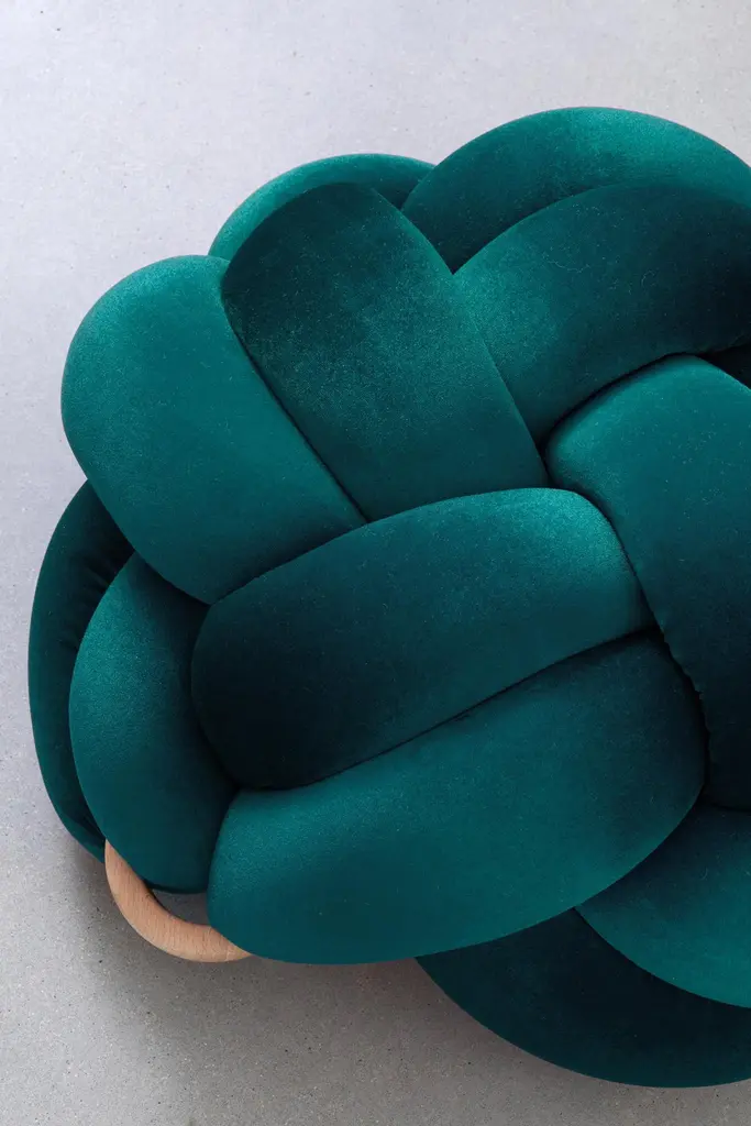 Handmade Velvet Petrol Knot Ottoman 30x30 Inch By Knots Studio