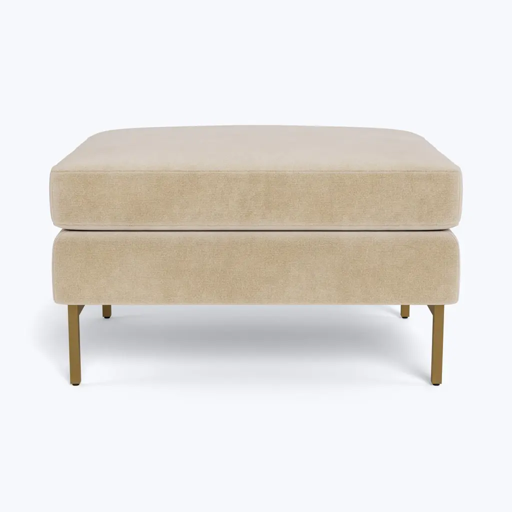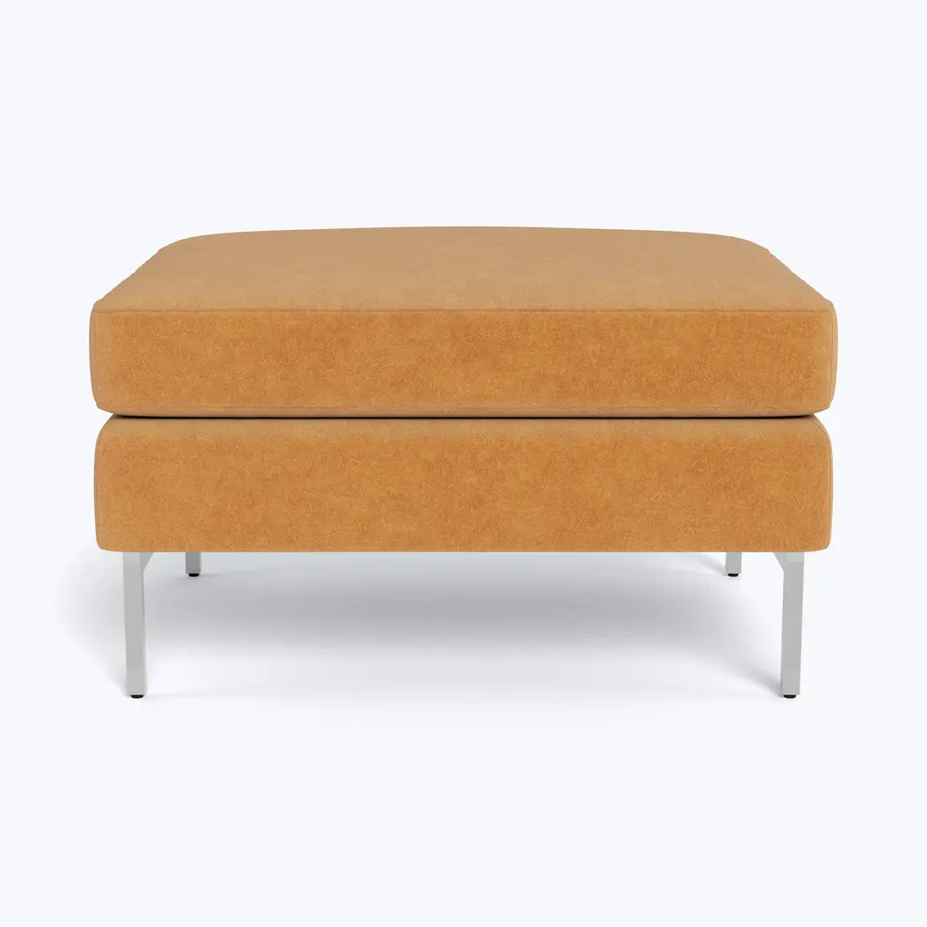 The Hannah Ottoman, exclusively from ABC Carpet & Home, is the perfect finishing touch to any living space. Whether used as a footrest, additional seating, or even a stylish coffee table, this versatile ottoman adds both functionality and modern elegance to your home. Its sleek, tailored design with slim lines makes it a seamless fit in urban apartments, cozy living rooms, or chic bedrooms.Crafted with a sustainably sourced Goodwood frame, the Hannah Ottoman embodies eco-conscious craftsmanship and exceptional durability. Choose between polished brass or steel legs for a refined touch that complements your space. With over 80 customizable fabric options—including plush velvets, soft linens, durable blends, and premium leather—you can design an ottoman that suits your unique style. Handcrafted to order and delivered within 8-10 weeks, the Hannah Ottoman offers luxury that’s tailored just for you.Pair it with other pieces from the Hannah Collection, such as the 66-inch loveseat, 76-inch apartment sofa, three-seat 86-inch sofa, 124-inch sectional, and lounge chair, to create a look that perfectly works with your living space and lifestyle.