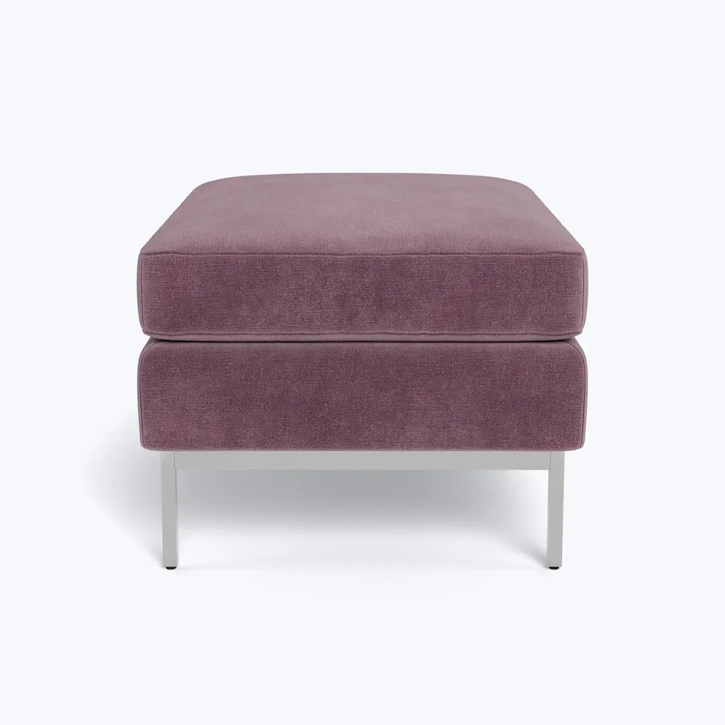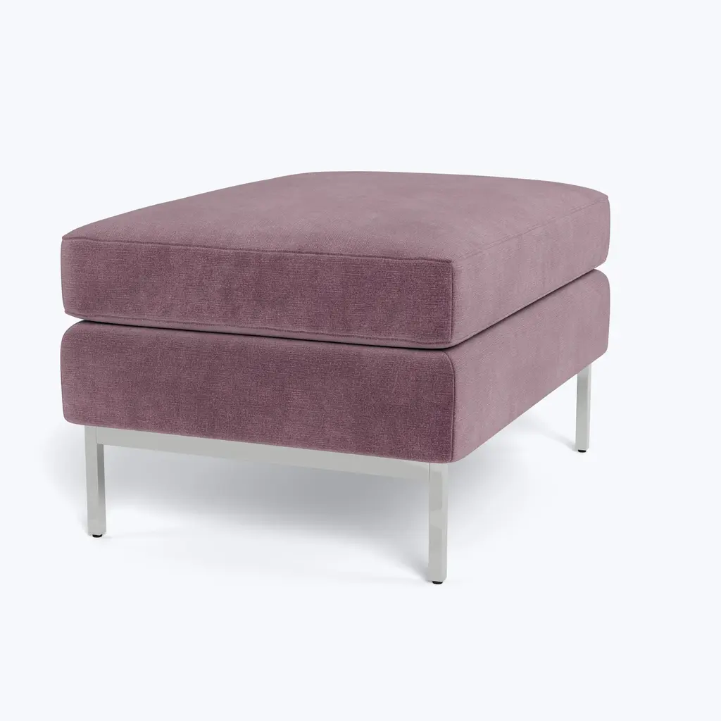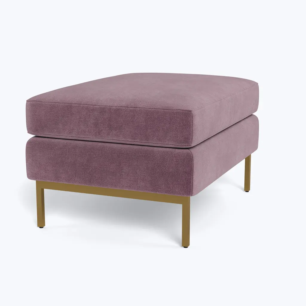 The Hannah Ottoman, exclusively from ABC Carpet & Home, is the perfect finishing touch to any living space. Whether used as a footrest, additional seating, or even a stylish coffee table, this versatile ottoman adds both functionality and modern elegance to your home. Its sleek, tailored design with slim lines makes it a seamless fit in urban apartments, cozy living rooms, or chic bedrooms.Crafted with a sustainably sourced Goodwood frame, the Hannah Ottoman embodies eco-conscious craftsmanship and exceptional durability. Choose between polished brass or steel legs for a refined touch that complements your space. With over 80 customizable fabric options—including plush velvets, soft linens, durable blends, and premium leather—you can design an ottoman that suits your unique style. Handcrafted to order and delivered within 8-10 weeks, the Hannah Ottoman offers luxury that’s tailored just for you.Pair it with other pieces from the Hannah Collection, such as the 66-inch loveseat, 76-inch apartment sofa, three-seat 86-inch sofa, 124-inch sectional, and lounge chair, to create a look that perfectly works with your living space and lifestyle.