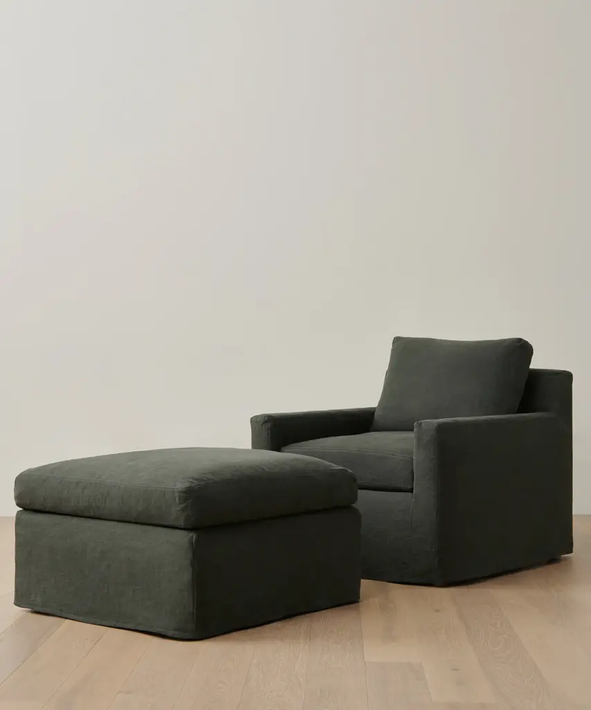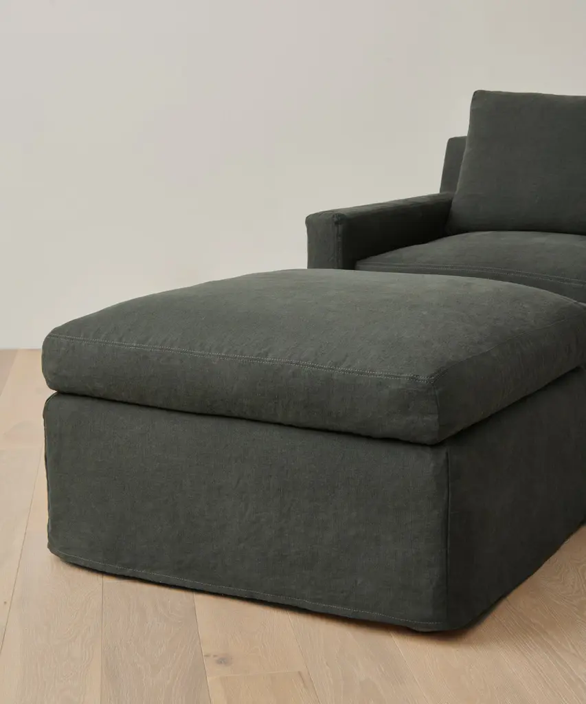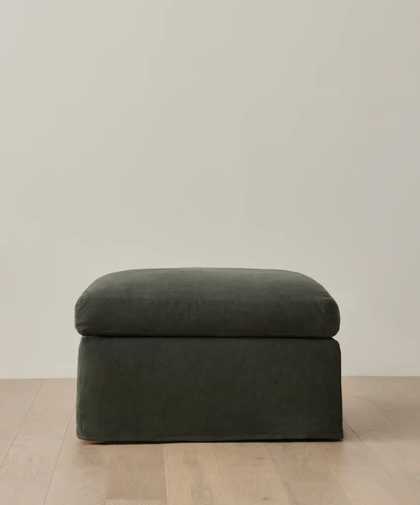 Harbor Ottoman Slate Linen Handmade in Los Angeles, the Harbor Ottoman is far more than a complementary piece—it’s the standout that’s designed to work together or alone. Style it with the complete Harbor Collection or add it to any existing space for a touch of trendless perfection—pair it with the Harbor Chair for a seamless seating addition that’s as comfortable as can be. Made with integrity, quality, and timeless design in mind, Jenni Kayne Furniture is built to last forever. For help styling this piece in your space, contact [email protected] for a complimentary consultation. For furniture purchases, please refer to our furniture inspection policy here. Classic ottoman featuring Libeco linen upholstery crafted in Belgium: 91% linen and 9% nylon slipcover with feather down fill.CA Residents: Prop 65 Information