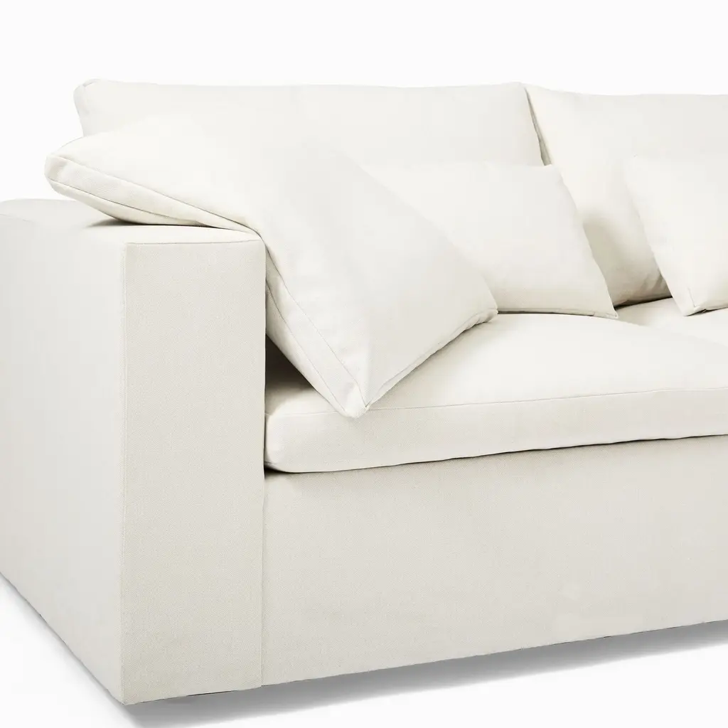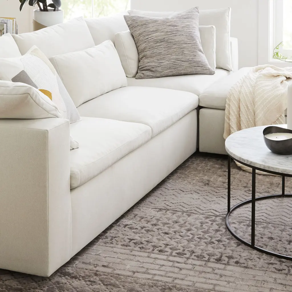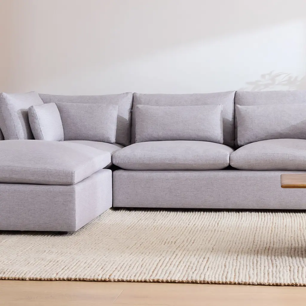 This modern sectional is all about comfort. Pillowy-soft cushions top the boxy silhouette. Hand-built frames with hand-finished upholstery. Contract Grade, so you know it's built to last.