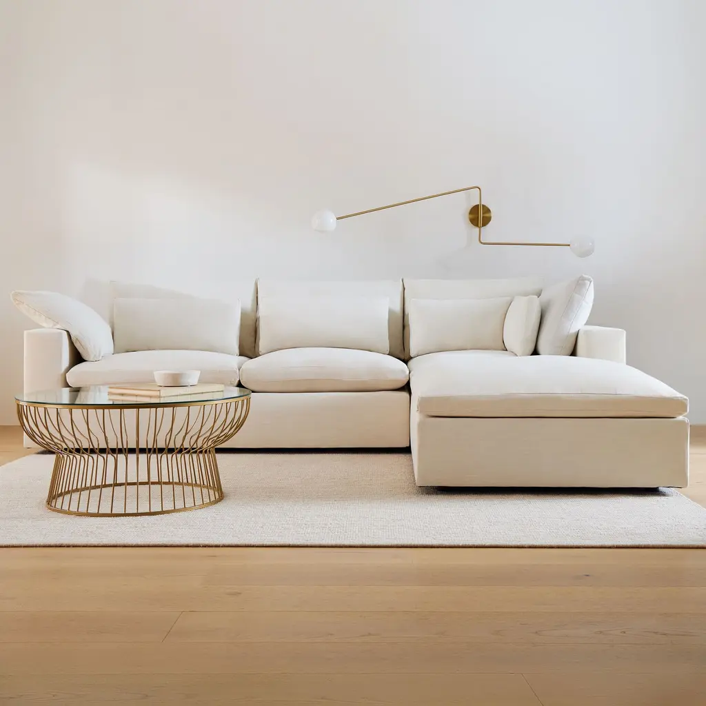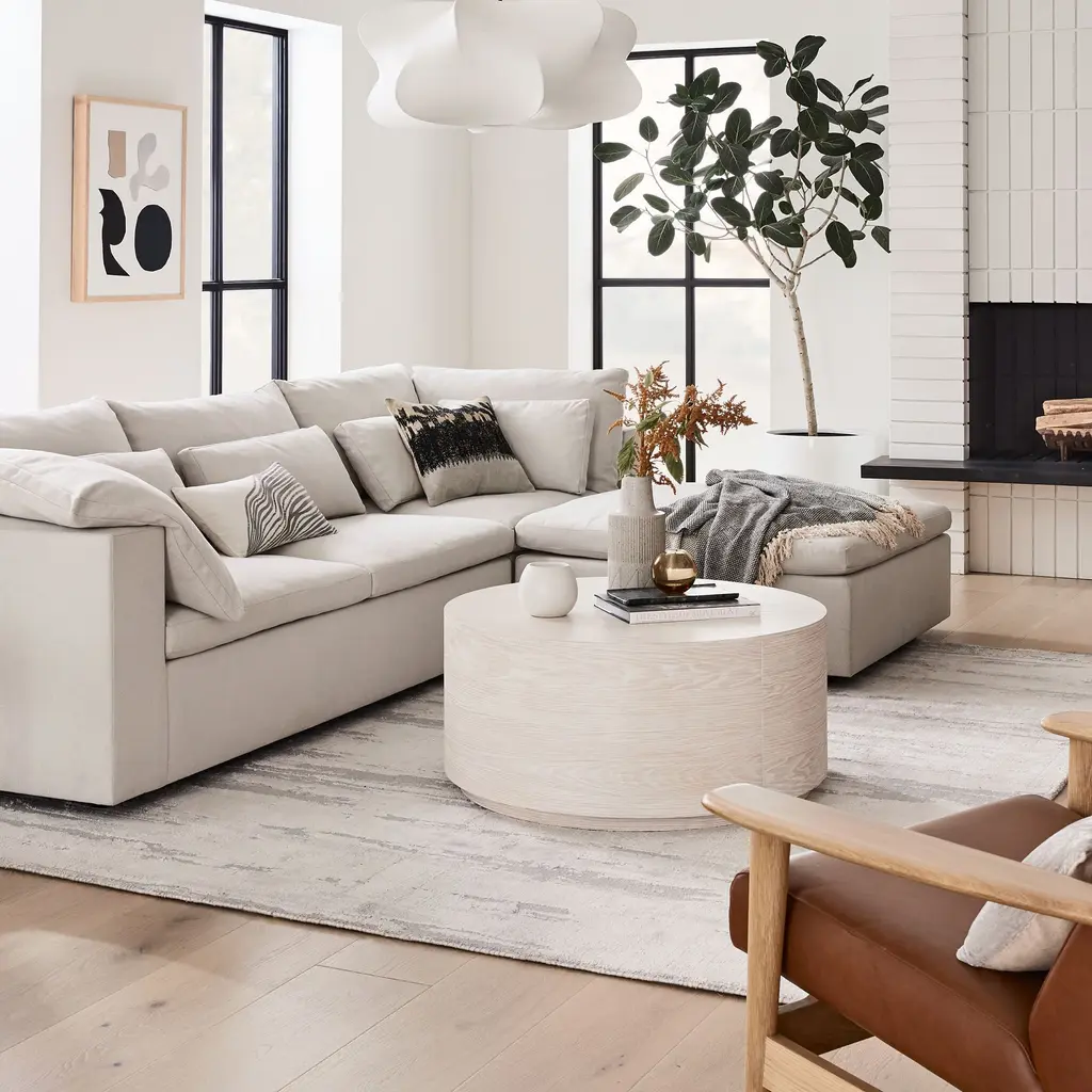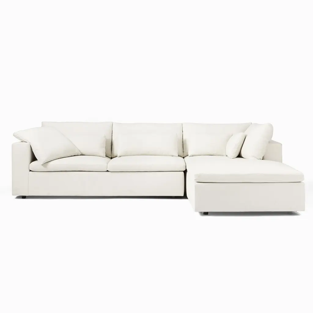 This modern sectional is all about comfort. Pillowy-soft cushions top the boxy silhouette. Hand-built frames with hand-finished upholstery. Contract Grade, so you know it's built to last.