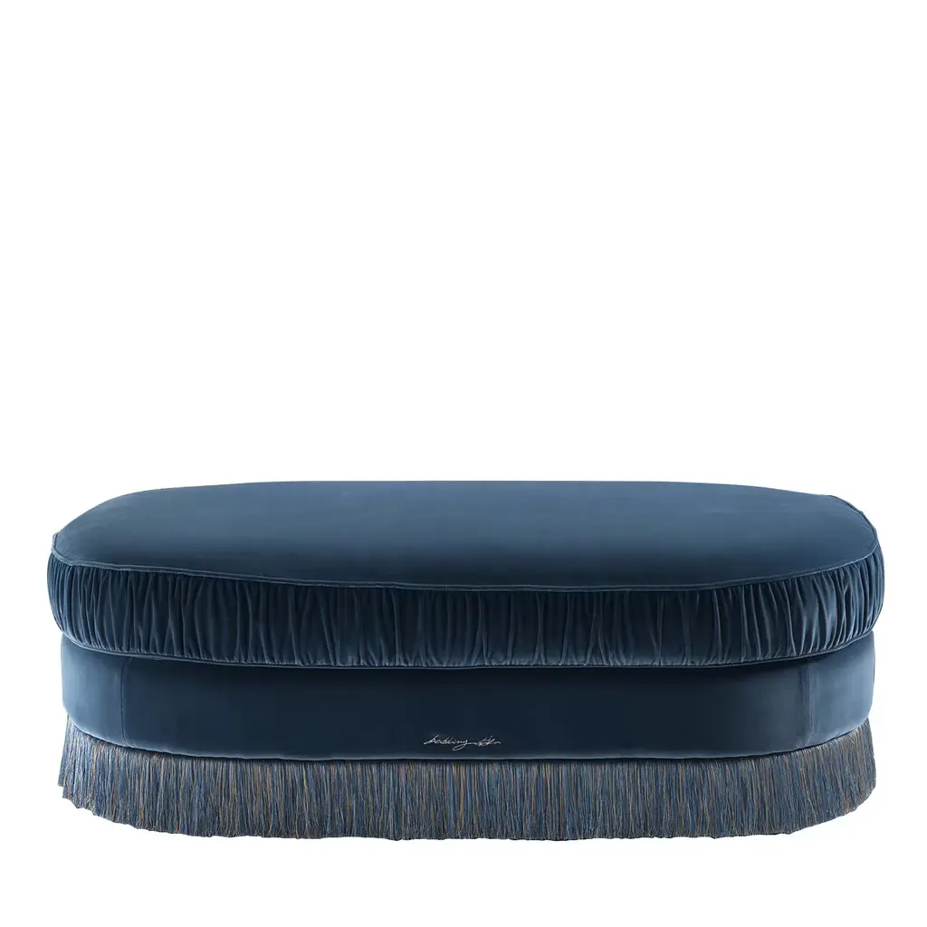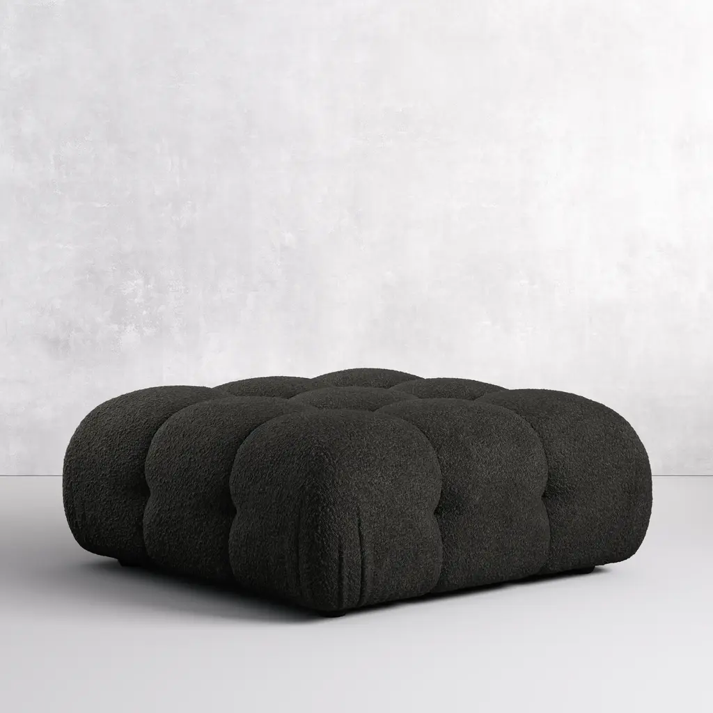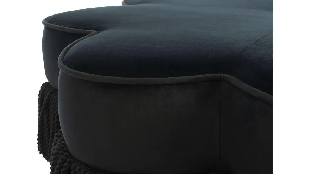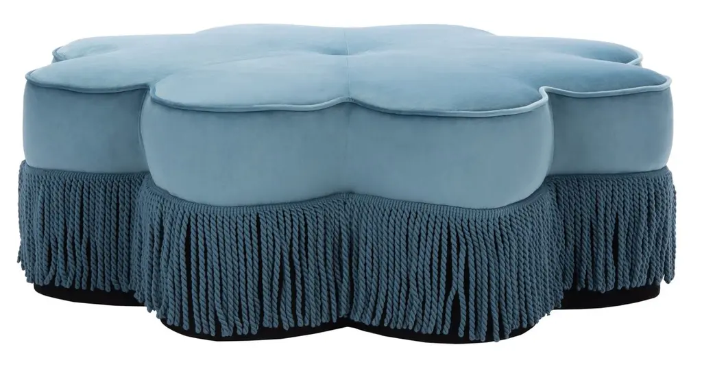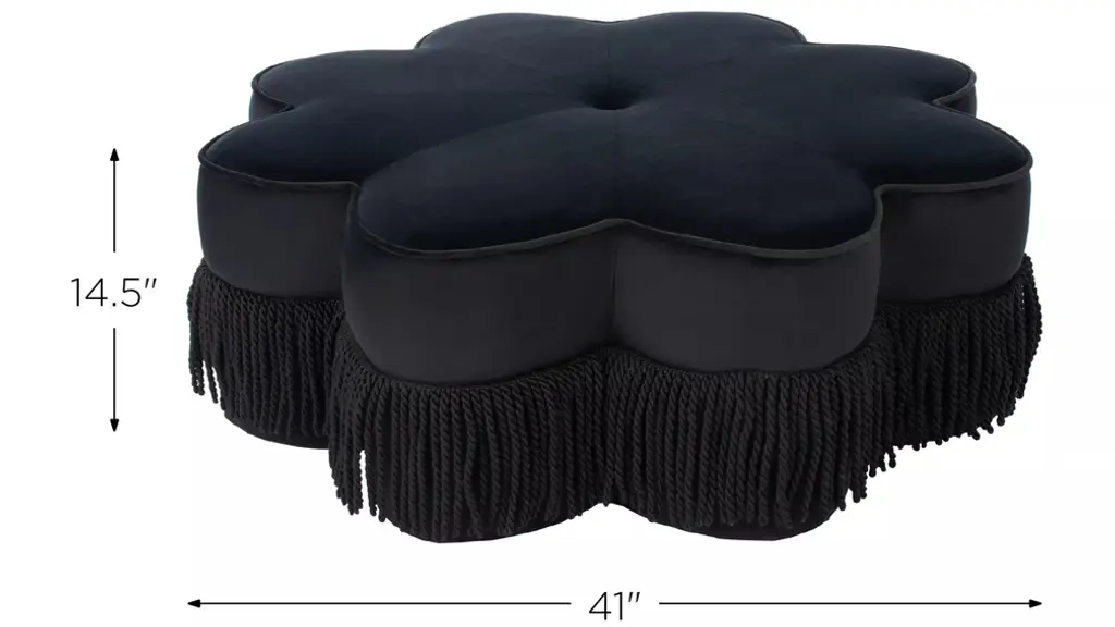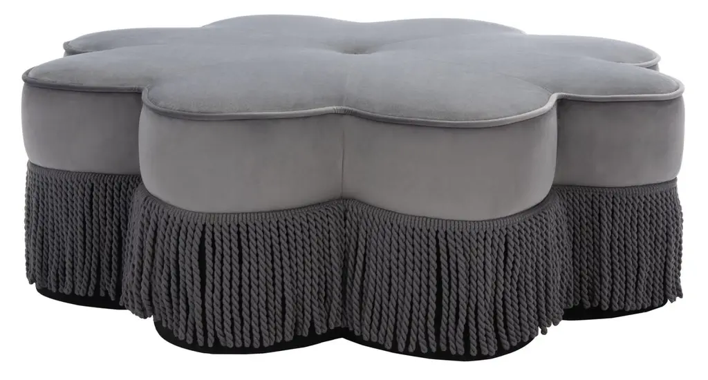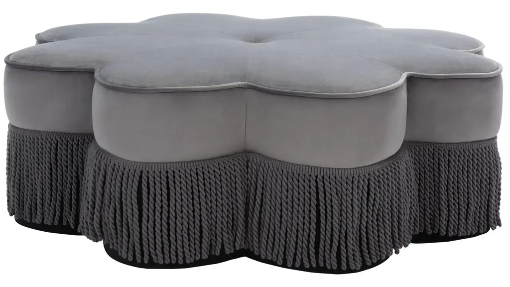 Cosmopolitan loft style made for every day luxury, the Harrison Flower Ottoman flourishes in modern decor. A dreamy design with heart shaped petals in black velvet and accented with matching fringe and piping, Harrison is ideal for the living room or bedroom as an extra seat, impromptu table, or for soothing tired feet.