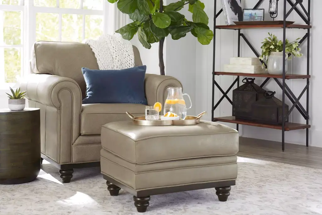 Use our Hartford ottoman for extra seating room, a spot to kick back or additional table space. This versatile and stylish piece features high-quality leather and turned legs for whatever your room needs.
