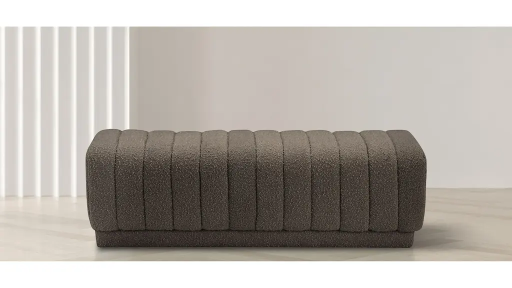 Place this lovely Heathrow Boucle Fabric Ottoman at the foot of your bed, or elsewhere to provide impromptu seating when you need it most.