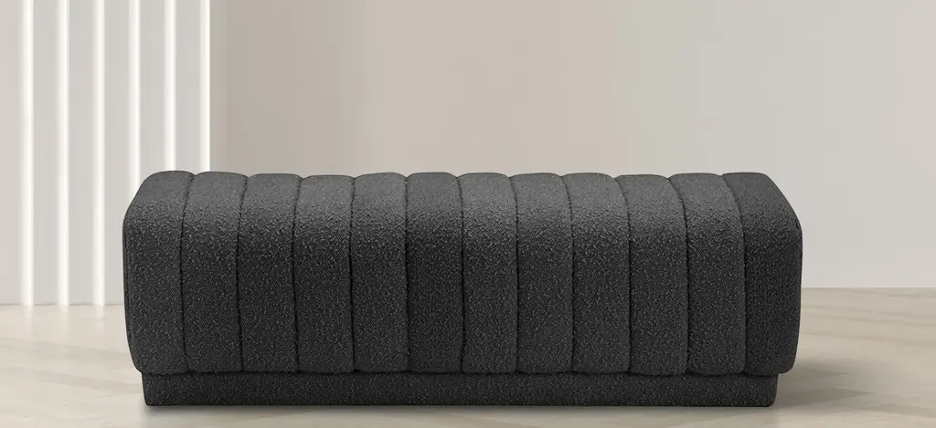 Place this lovely Heathrow Boucle Fabric Ottoman at the foot of your bed, or elsewhere to provide impromptu seating when you need it most.