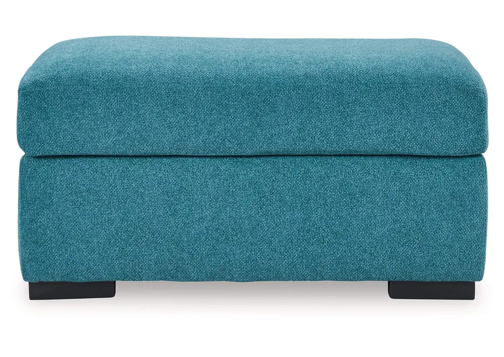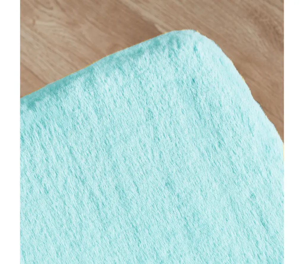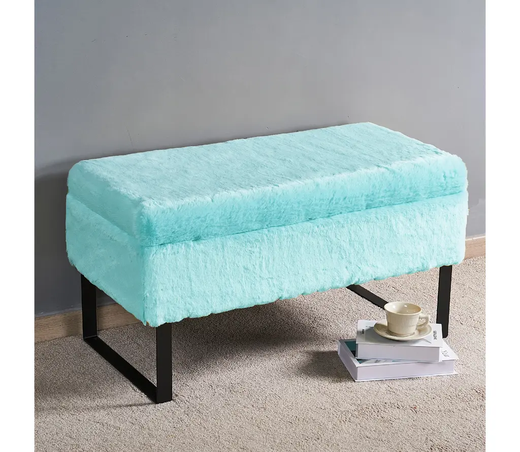 Heavy Faux Fur Storage Bleached Aqua Ottoman 18" X 36" X 10"