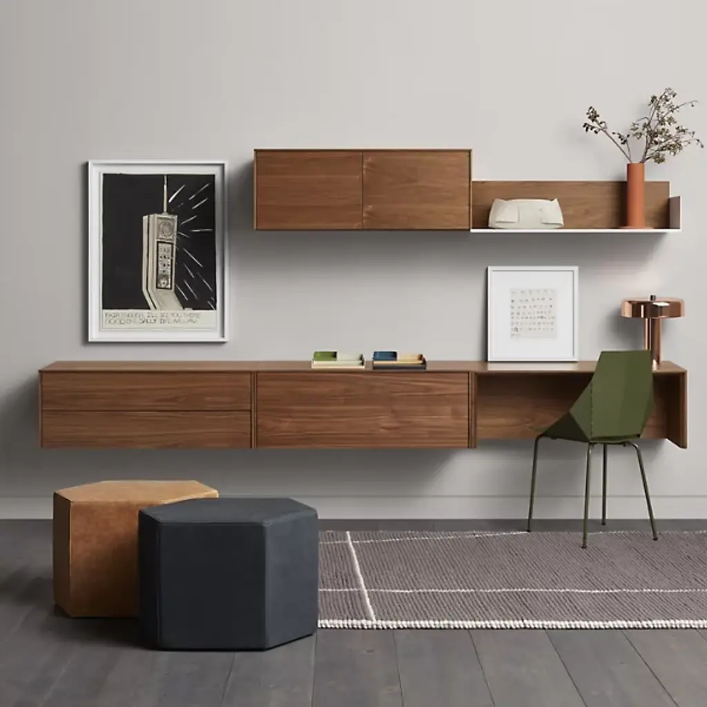How many sides does it take to create a cool modern ottoman? Six, of course. The Blu Dot Hecks Ottoman is an elongated hexagon covered in one of a variety of soft Thurmond fabric colors. The sharp geometric shape is eye-catching all on its own, and it also allows for seamless customized groupings of Hecks as desired.