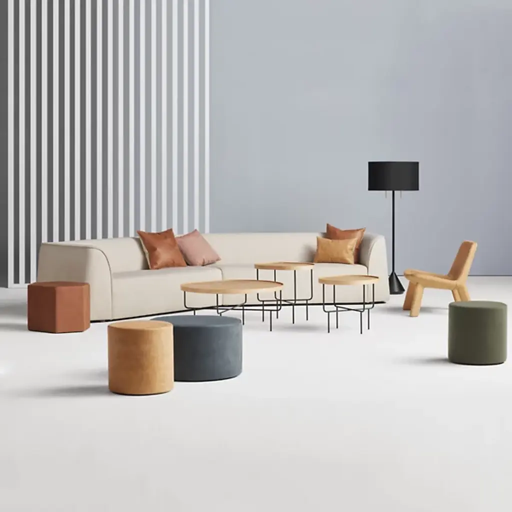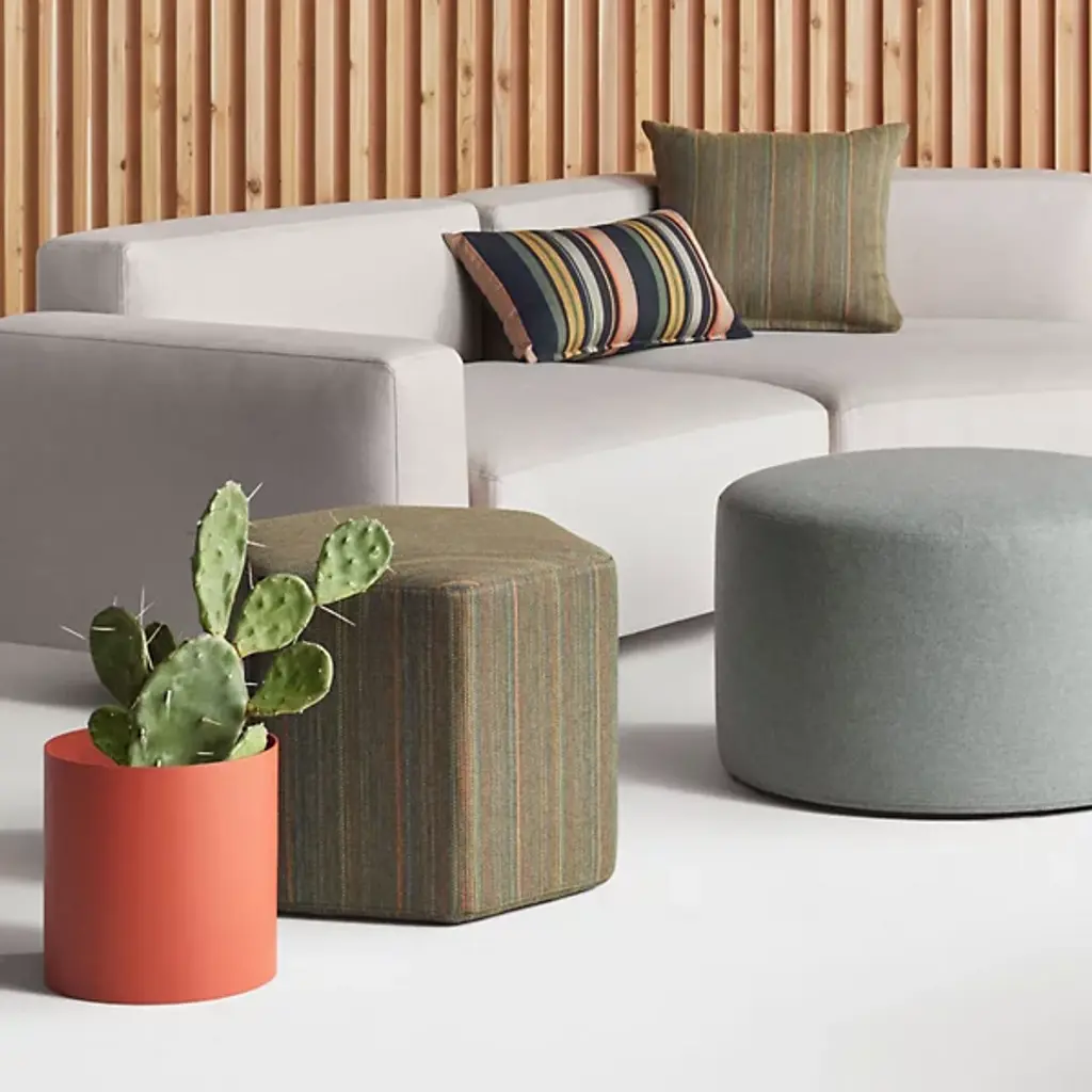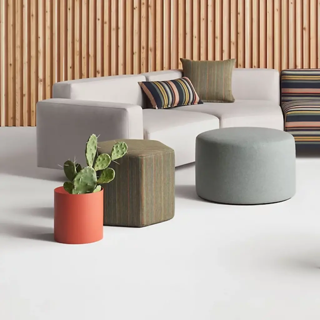 How many sides does it take to create a cool modern ottoman? Six, of course. The Blu Dot Hecks Ottoman is an elongated hexagon covered in one of a variety of soft Thurmond fabric colors. The sharp geometric shape is eye-catching all on its own, and it also allows for seamless customized groupings of Hecks as desired.