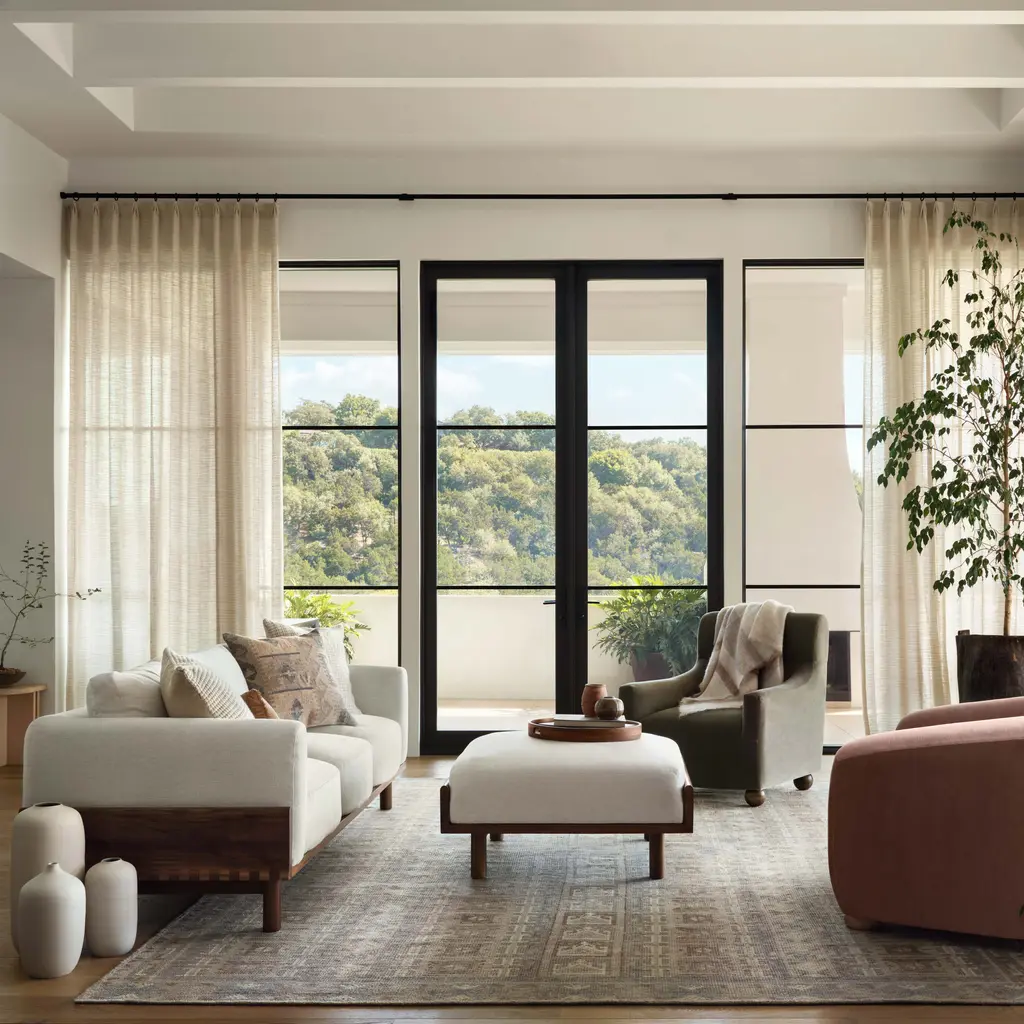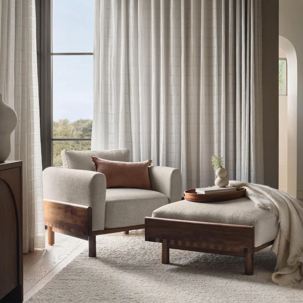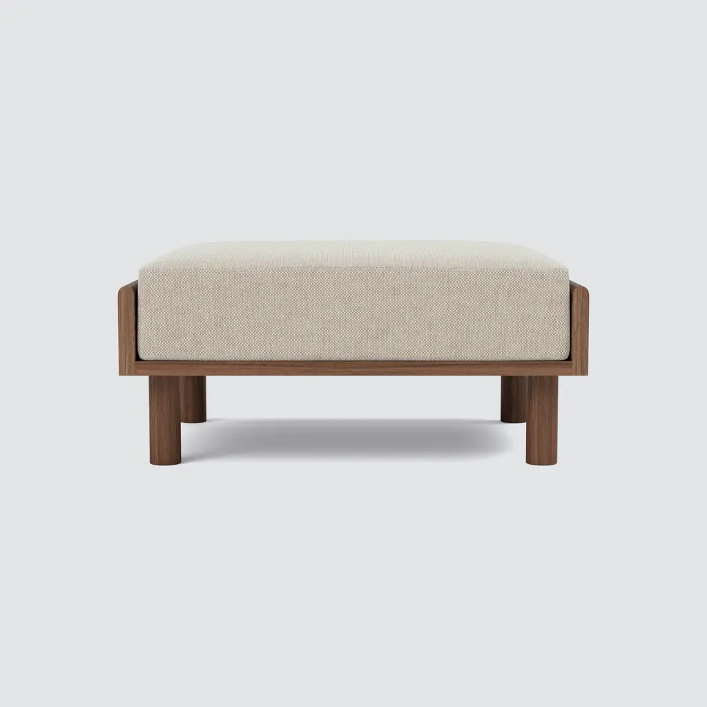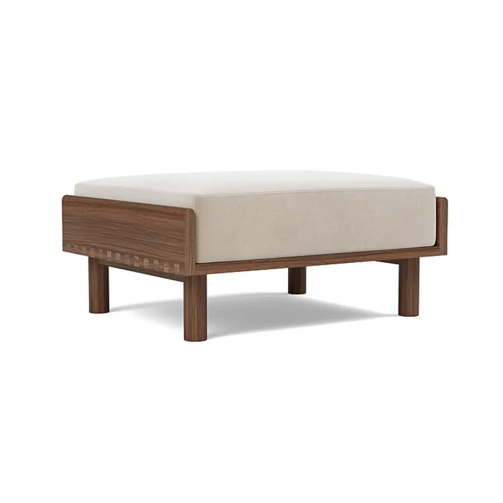 Framed with the finest solid walnut, this plush, custom ottoman makes every home a little more inviting.