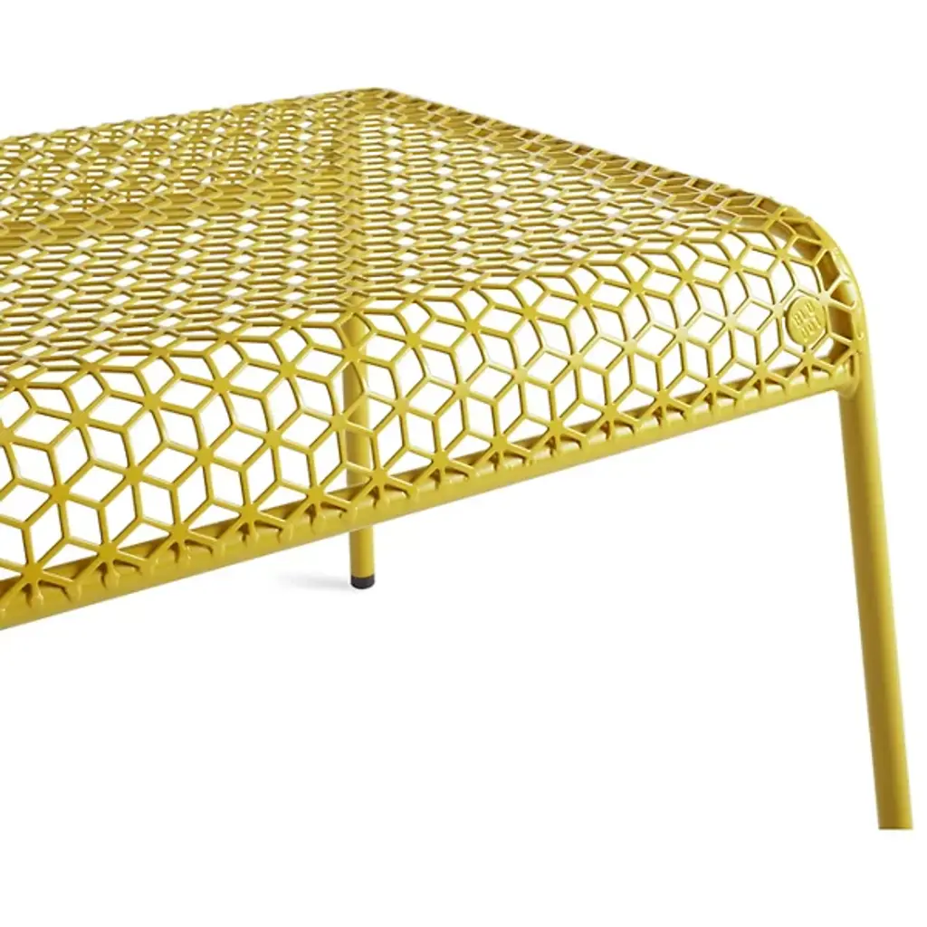 Why should your bottom have all the fun? The Blu Dot Hot Mesh Ottoman brings the airy, geometric perforations of the Hot Mesh collection to your legs and feet. The entire piece is made out of steel coated in a durable powder coat.