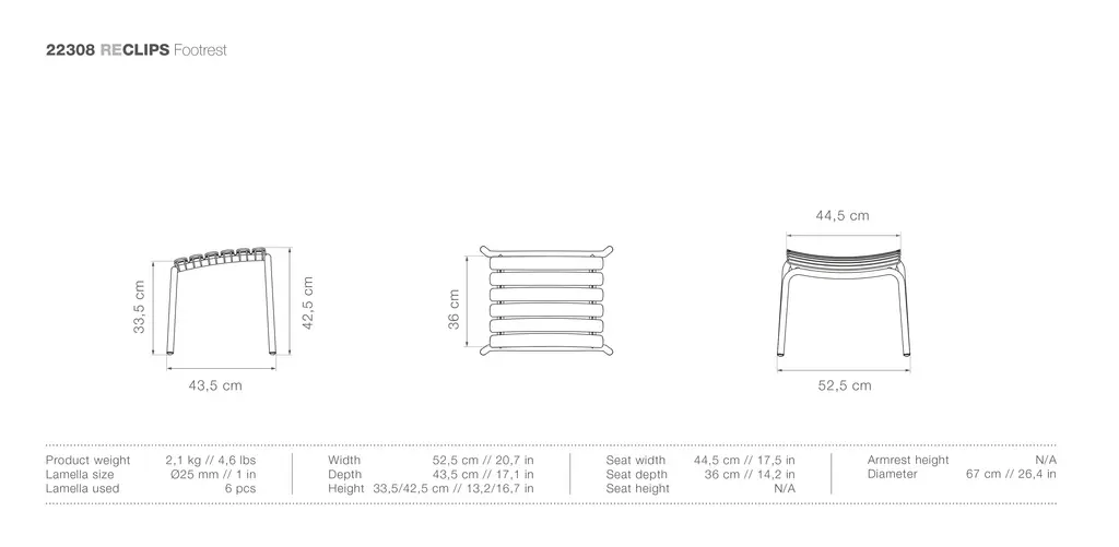 The RECLIPS Ottoman is the perfect addition to your outdoor living space. Constructed of plastic lamellas, it is airy and comfortable.