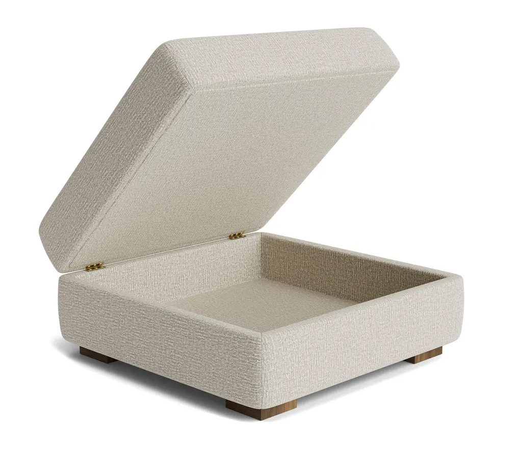 Clutter’s got nothing on Idan Storage Ottoman when it’s time to quickly clean up before guests arrive. After everything’s tidy, close its padded, comfy top for an extra seat or table—ta da! Handcrafted in the USA to your specifications for flexible styling options.