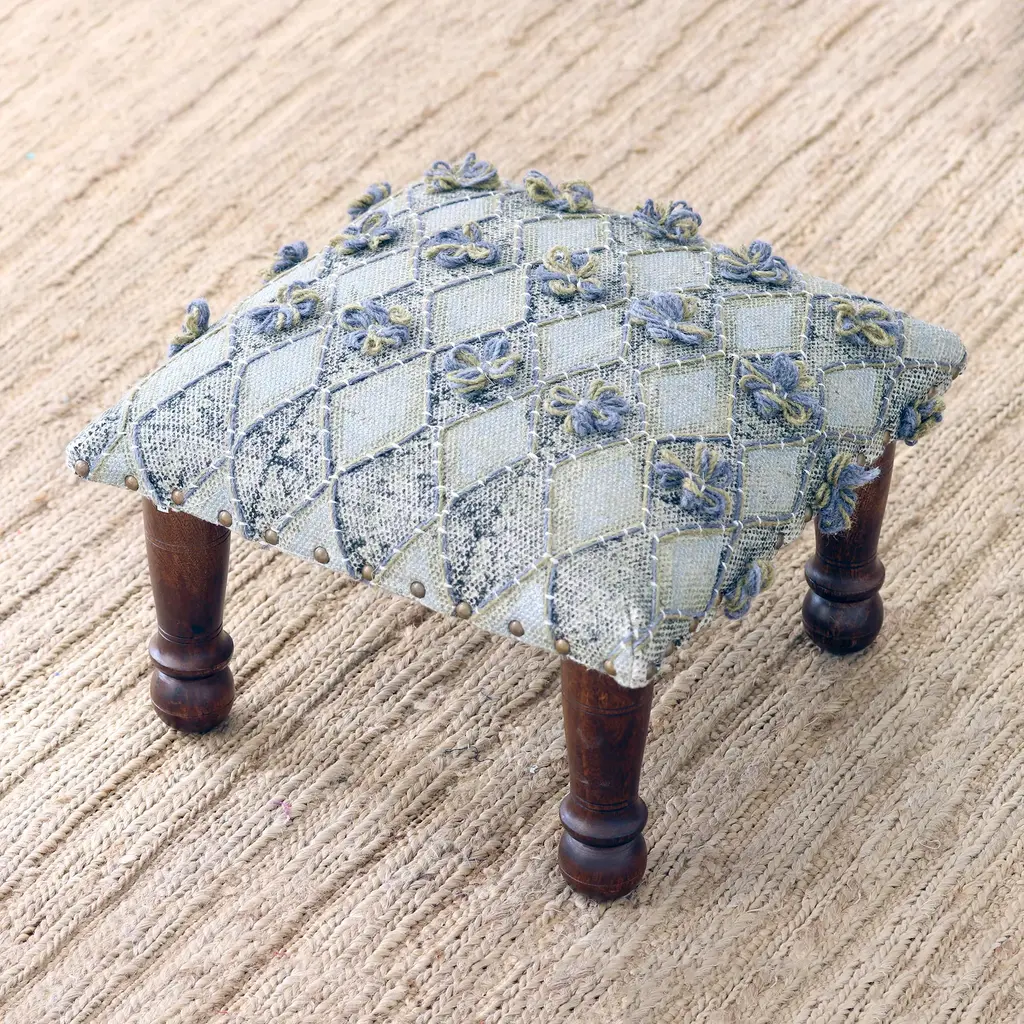 Ganpat Mehta's artisan team gives traditional Indian textiles a second chance to craft this lavish ottoman footstool. Cotton and polyester pieces create a sublime patchwork in a palette of bright and dapper hues, completed by acacia wood legs that can be removed for practical storage.