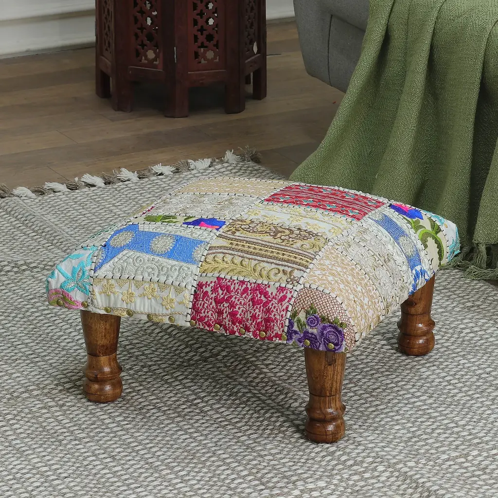 Indian Classic Patchwork Ottoman Footstool In Bright Hues- Dreams From Paradise