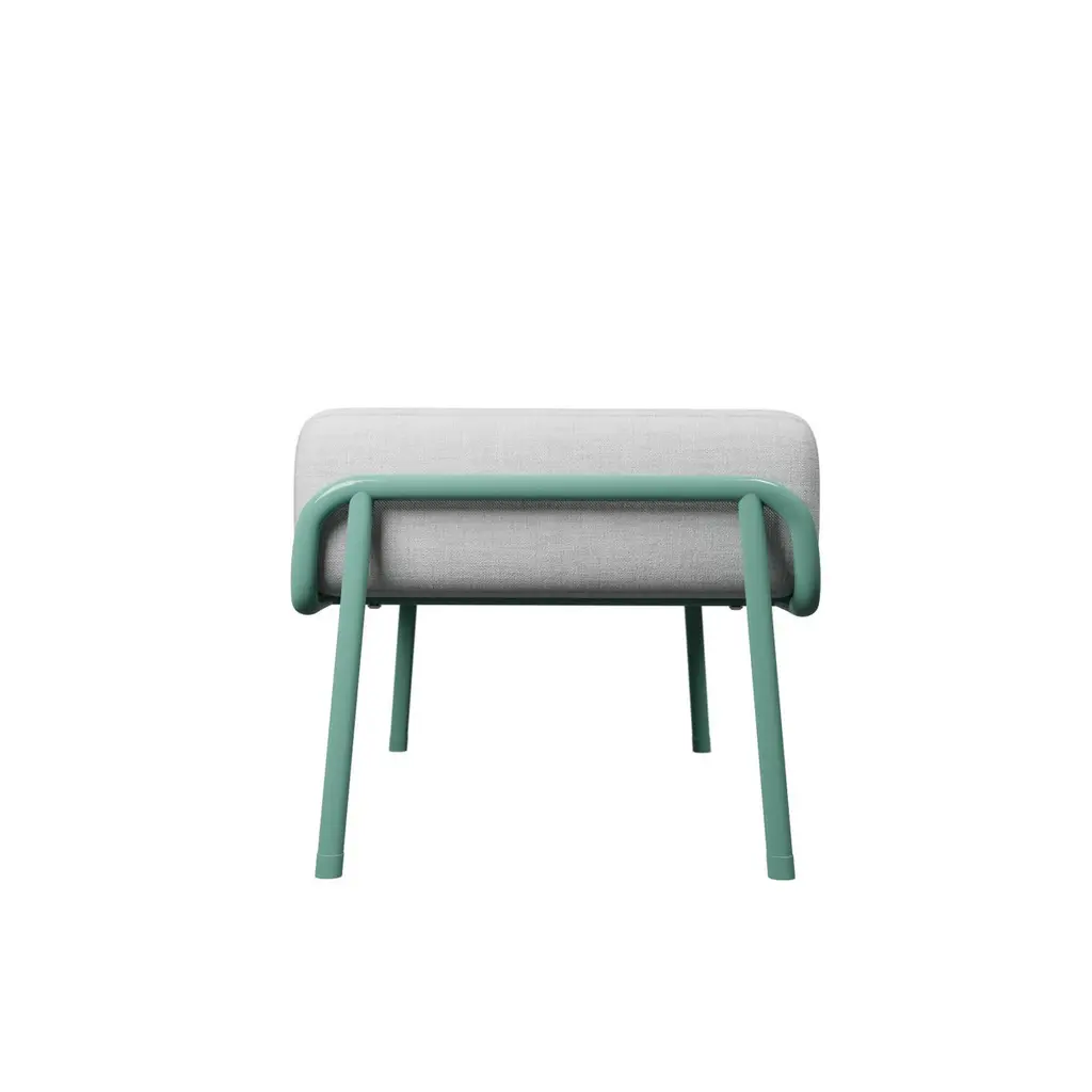 Industrial Green Sea Finish Ottoman Duv Cream Fabric Handcrafted By Murmurio
