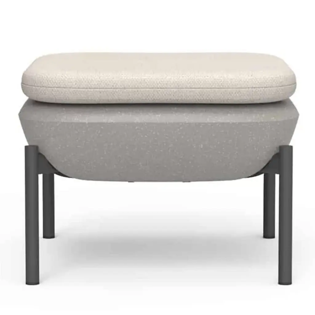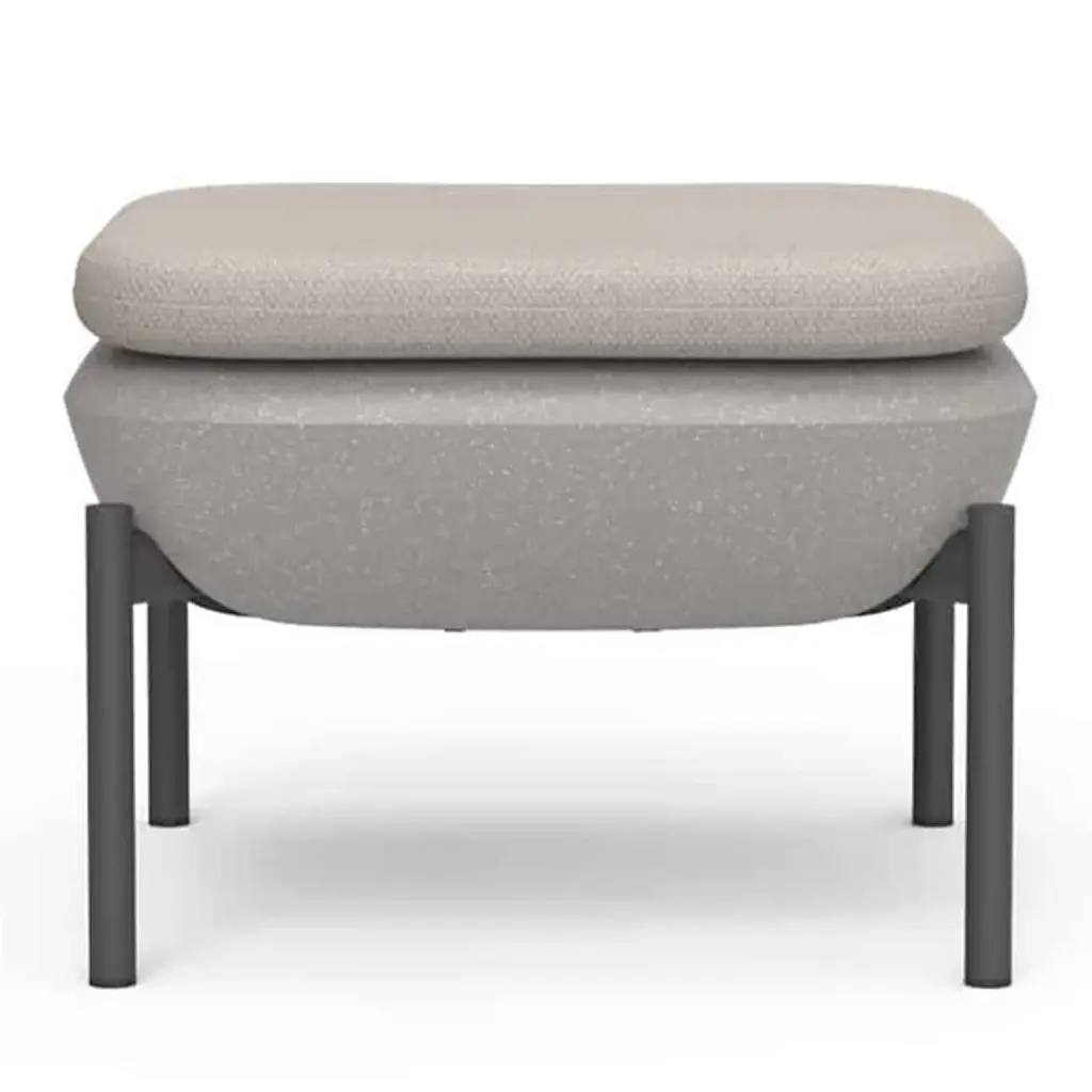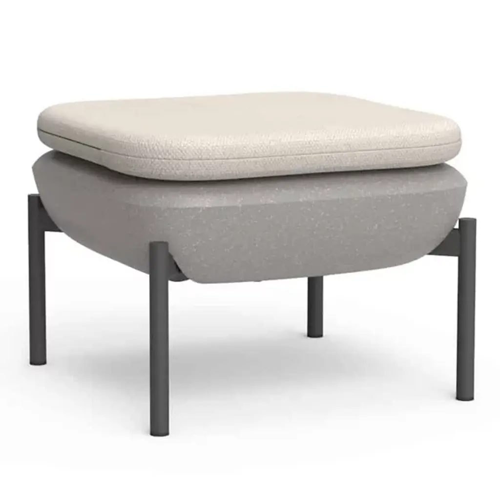 The Inou Elements Ottoman from Crescent Garden InOu serves as both a footstool and an additional seating option, providing versatile support for outdoor relaxation and entertaining. This piece pairs naturally with lounge chairs and armchairs from the Elements collection or works independently as a compact seating solution. Recyclable polyethylene construction with powder-coated legs delivers weather resistance without compromising comfort or style. The ottoman's modular nature enables easy repositioning and reconfiguration as outdoor spaces evolve, while removable Sunbrella covers ensure simple maintenance.