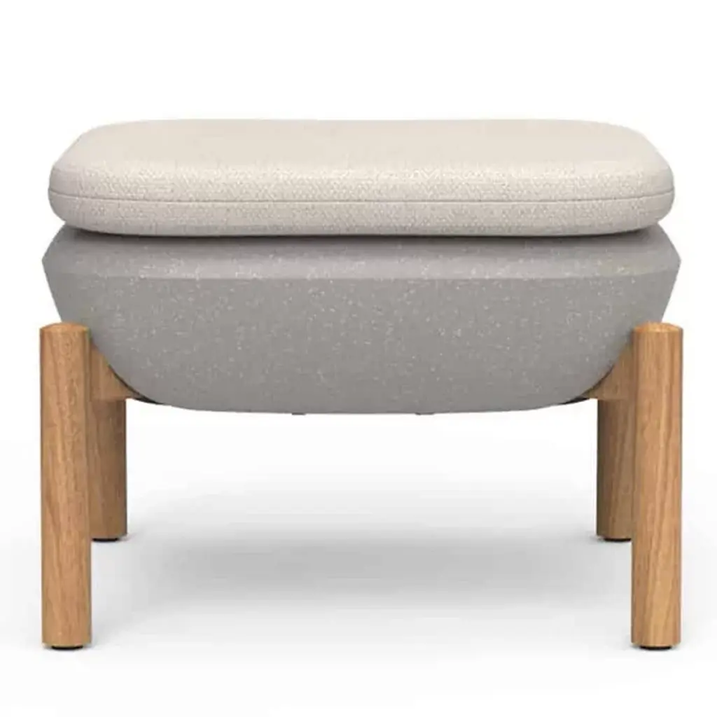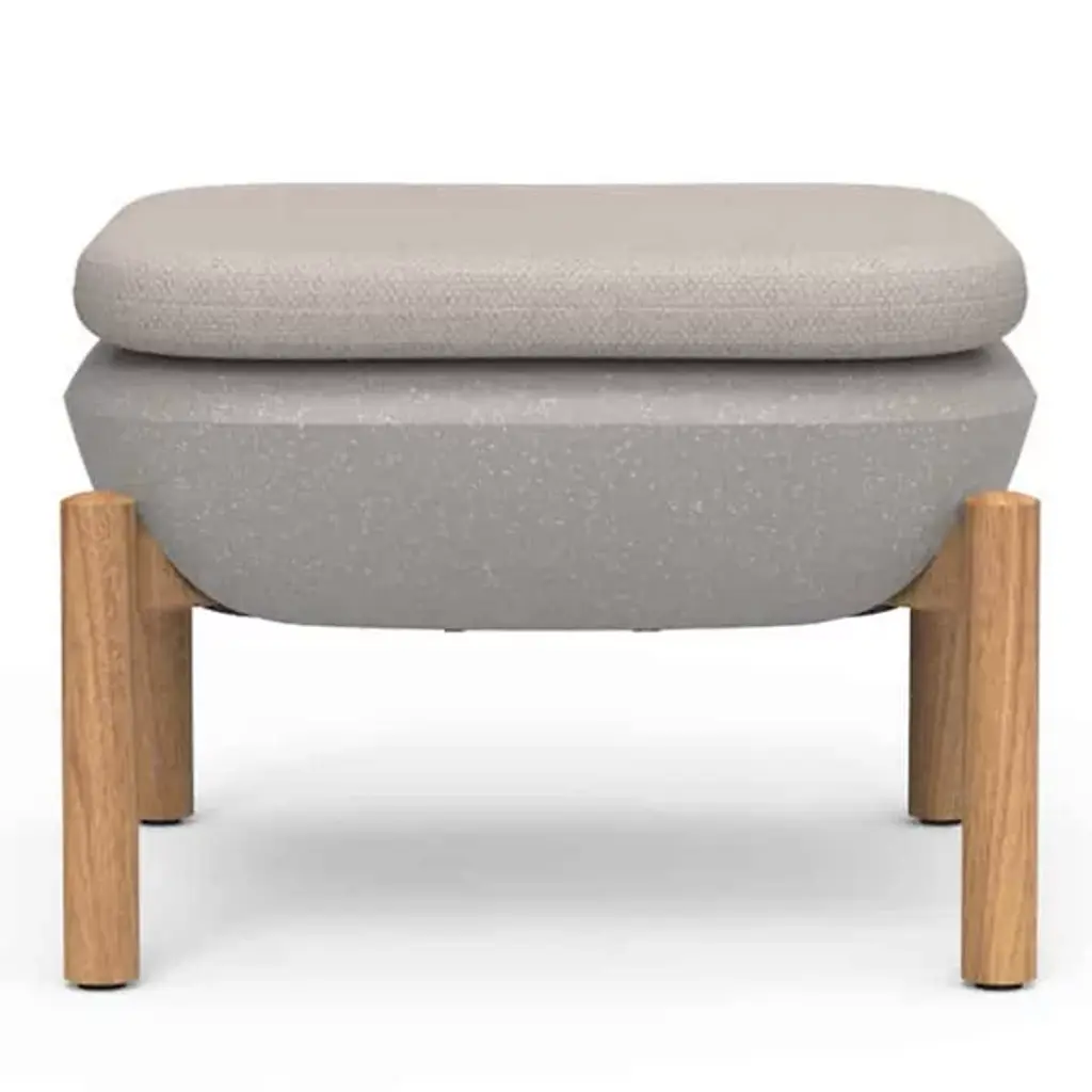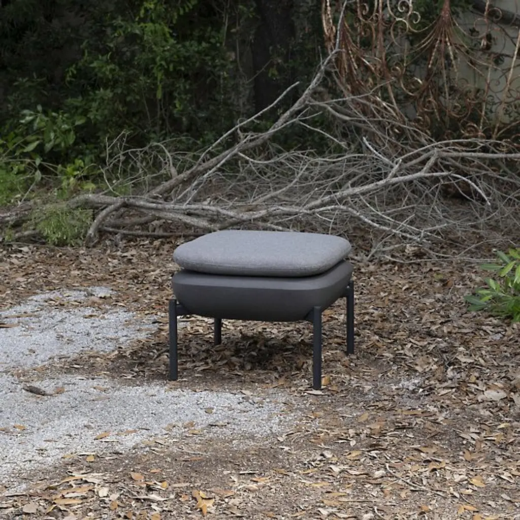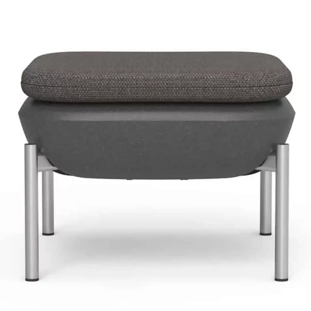 The Inou Elements Ottoman from Crescent Garden InOu serves as both a footstool and an additional seating option, providing versatile support for outdoor relaxation and entertaining. This piece pairs naturally with lounge chairs and armchairs from the Elements collection or works independently as a compact seating solution. Recyclable polyethylene construction with powder-coated legs delivers weather resistance without compromising comfort or style. The ottoman's modular nature enables easy repositioning and reconfiguration as outdoor spaces evolve, while removable Sunbrella covers ensure simple maintenance.