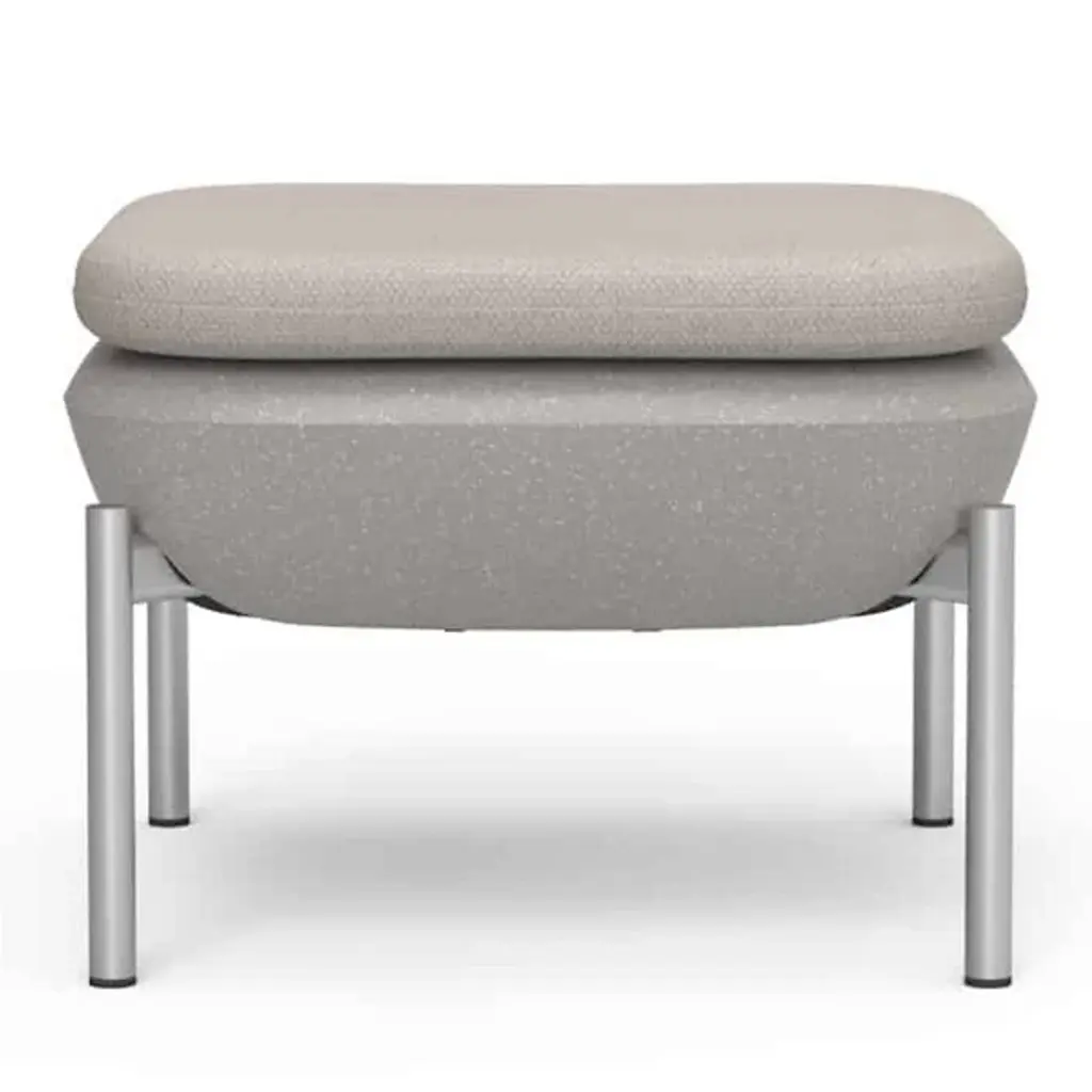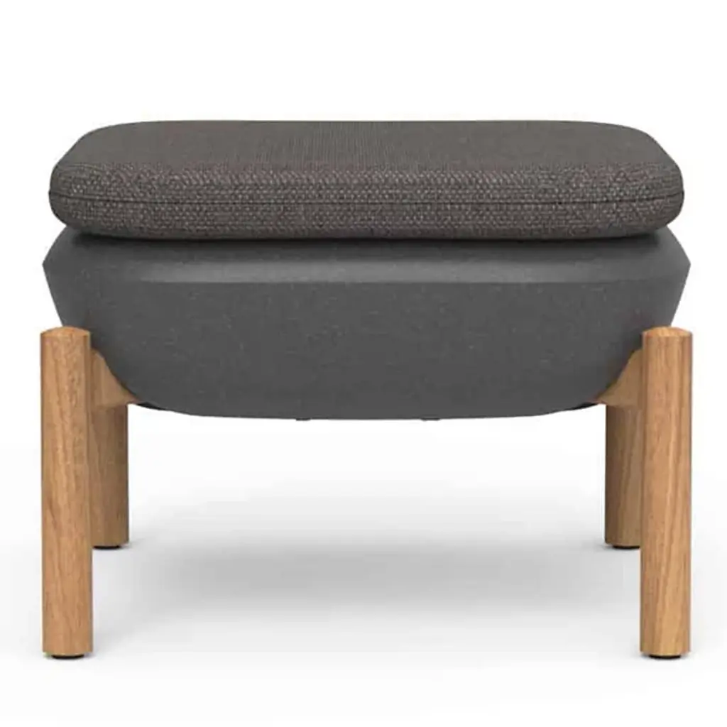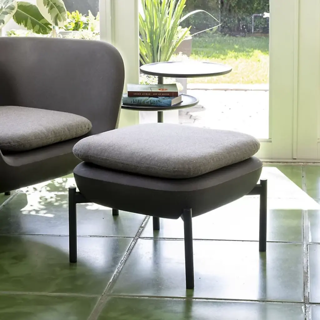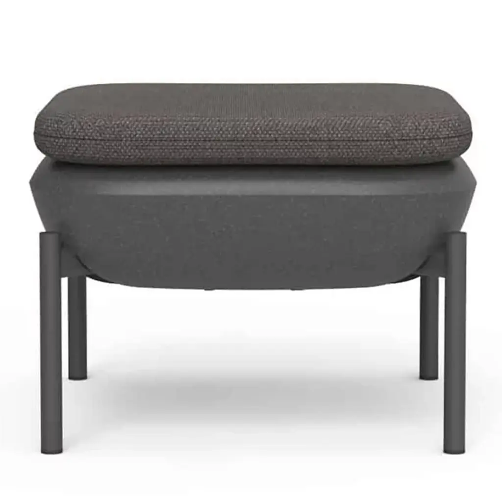 The Inou Elements Ottoman from Crescent Garden InOu serves as both a footstool and an additional seating option, providing versatile support for outdoor relaxation and entertaining. This piece pairs naturally with lounge chairs and armchairs from the Elements collection or works independently as a compact seating solution. Recyclable polyethylene construction with powder-coated legs delivers weather resistance without compromising comfort or style. The ottoman's modular nature enables easy repositioning and reconfiguration as outdoor spaces evolve, while removable Sunbrella covers ensure simple maintenance.