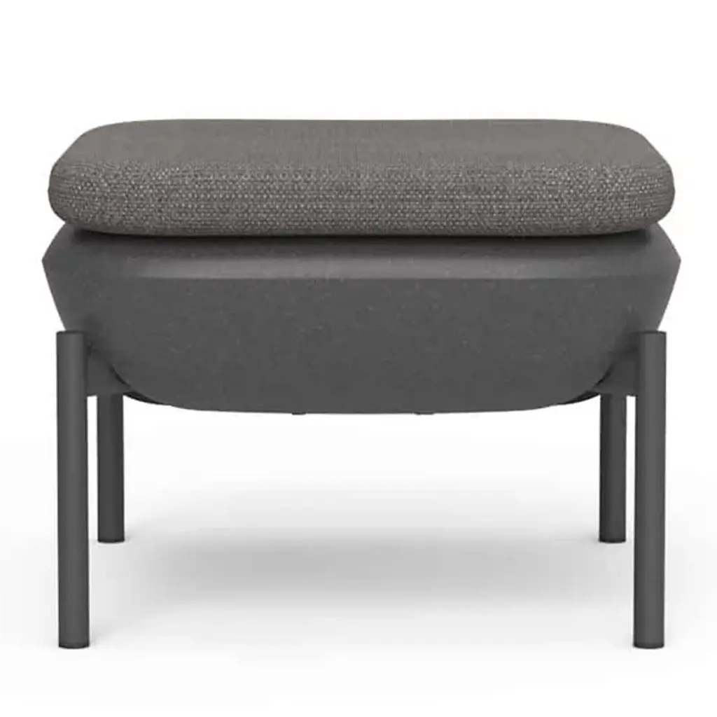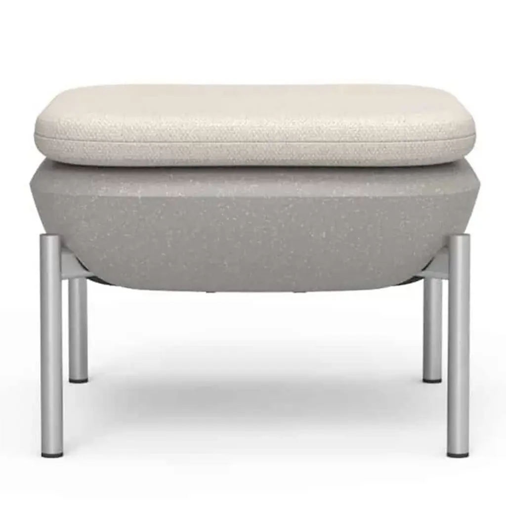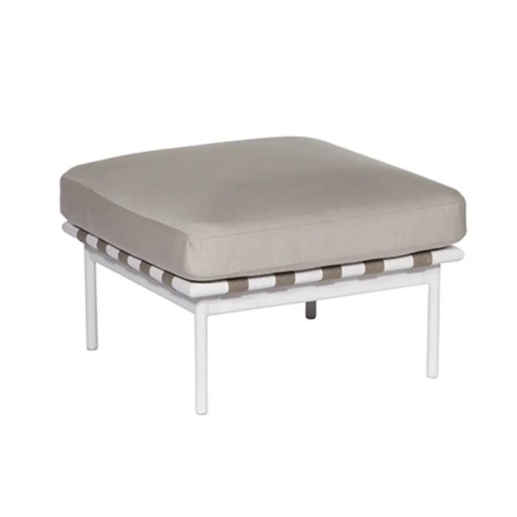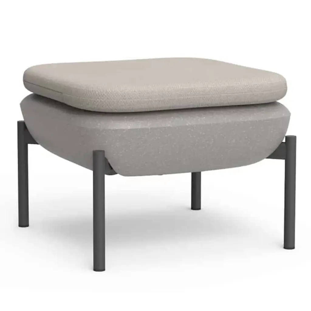 The Inou Elements Ottoman from Crescent Garden InOu serves as both a footstool and an additional seating option, providing versatile support for outdoor relaxation and entertaining. This piece pairs naturally with lounge chairs and armchairs from the Elements collection or works independently as a compact seating solution. Recyclable polyethylene construction with powder-coated legs delivers weather resistance without compromising comfort or style. The ottoman's modular nature enables easy repositioning and reconfiguration as outdoor spaces evolve, while removable Sunbrella covers ensure simple maintenance.