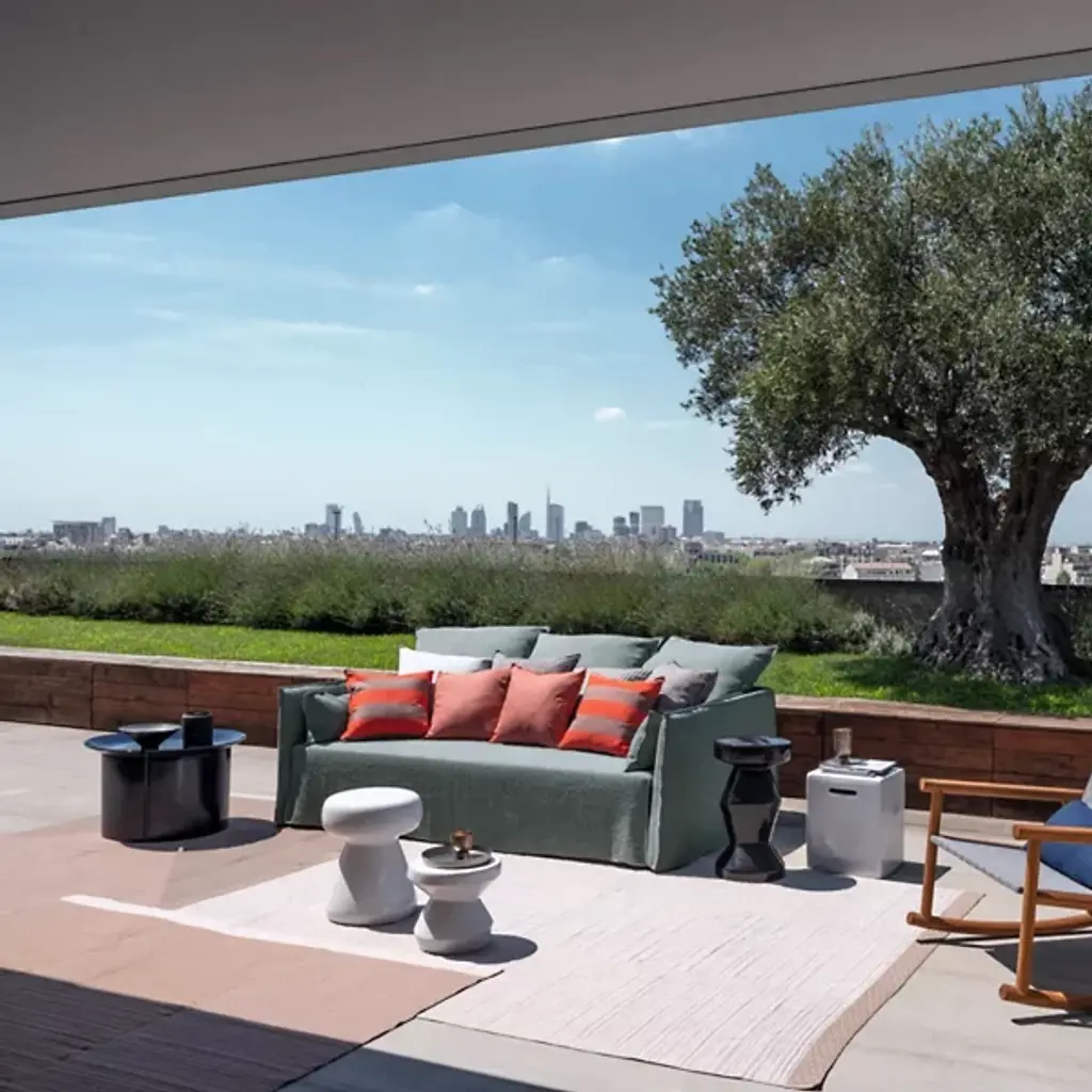Make the chic InOut 44 Ottoman from Gervasoni a part of your indoor or outdoor living space. Designed by Paola Navone, this ottoman is composed of GFRC Cement and boasts a concrete frame. This table showcases gourd-like contours and is crowned by a thick, circular tabletop. This statement piece makes a bold statement in your environment. Place this side table beside your sofa and keep your diary or journal at arm’s length.