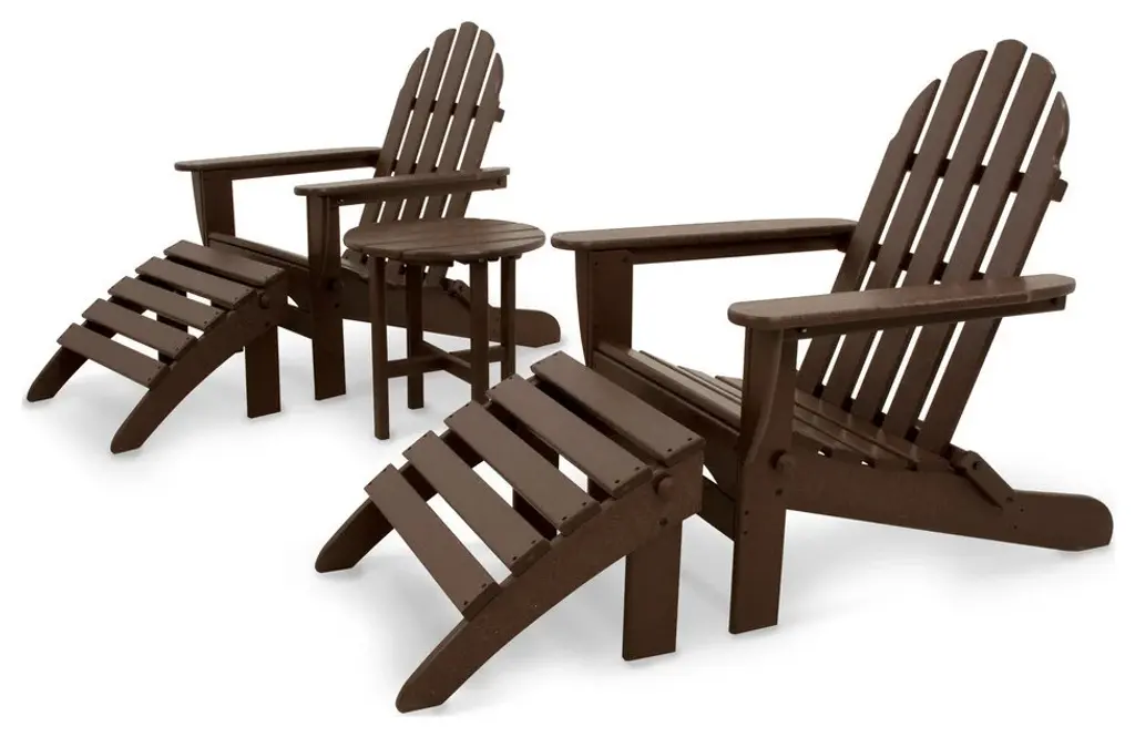Ivy Terrace Classics 5-Piece Folding Adirondack And Ottoman Set, Mahogany