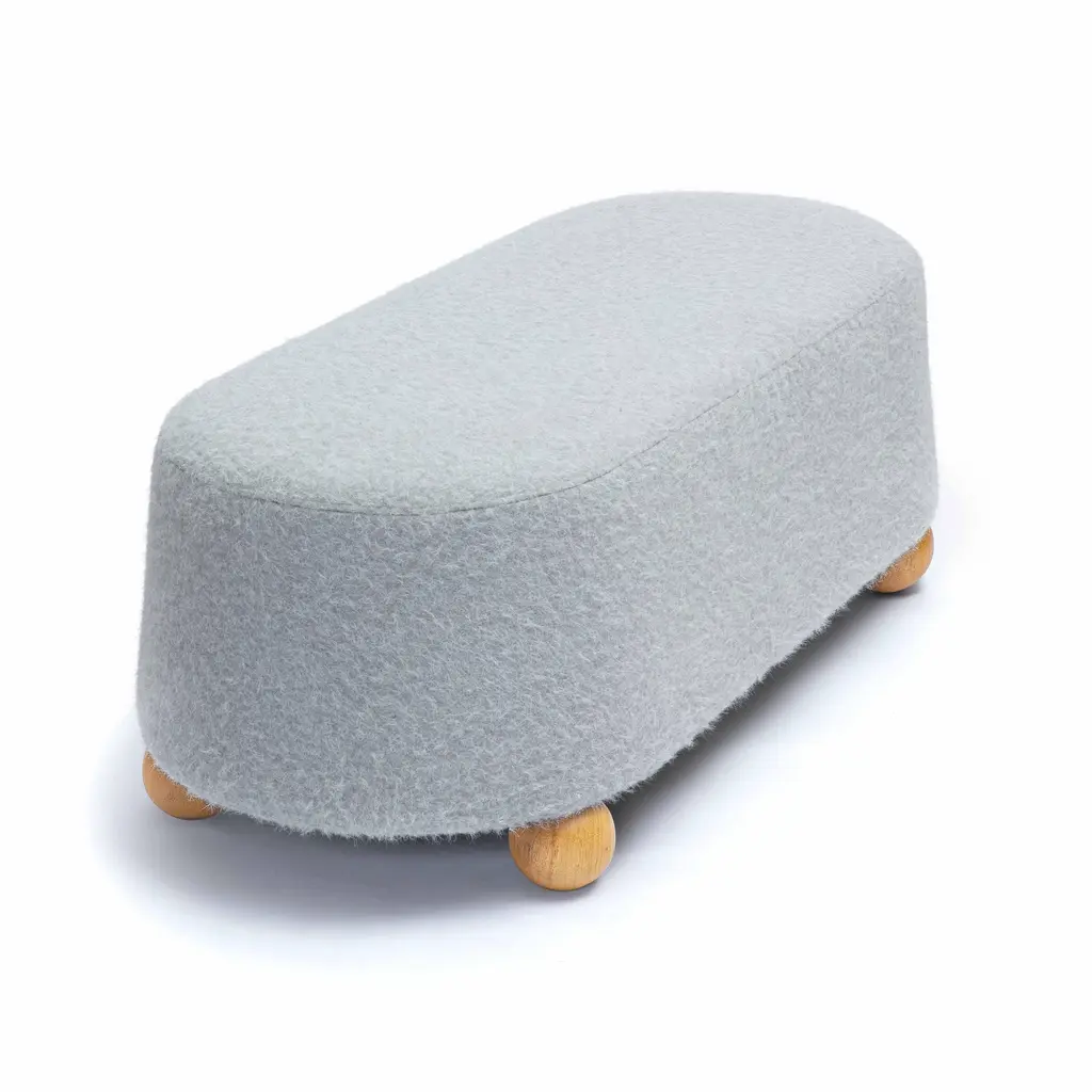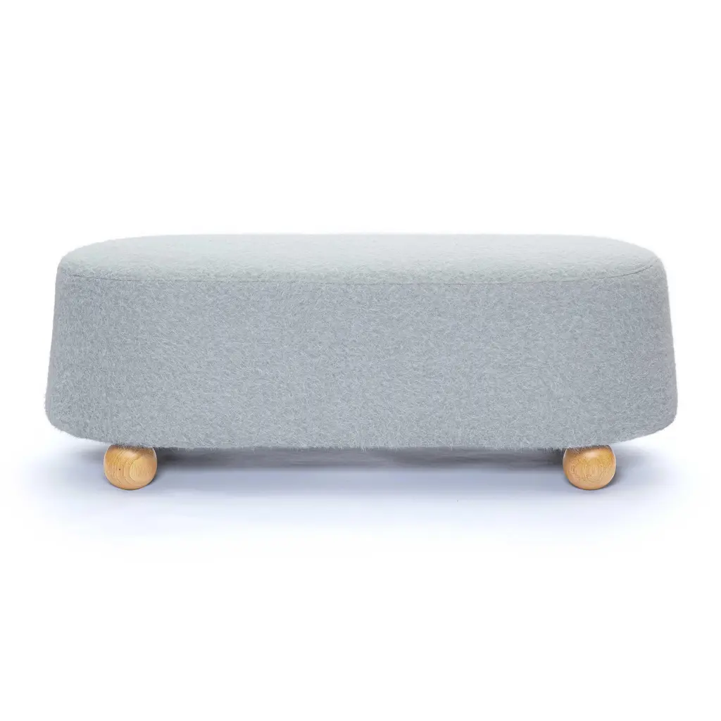 Add a playful charm to your space with the Jaine Stool, boasting a slightly conical shape that catches the eye. Its spherical solid wood legs provide a sturdy base, while the nubby boucle (available in chocolate brown, cream, or forest green) or loose faux mohair (available in forest green and stone grey) upholsteries add a modern, textured touch. Not only is it on-trend with its color palette, but this ottoman also seamlessly blends contemporary style with a tactile experience, making it a must-have for any room. Also available in two size variations!