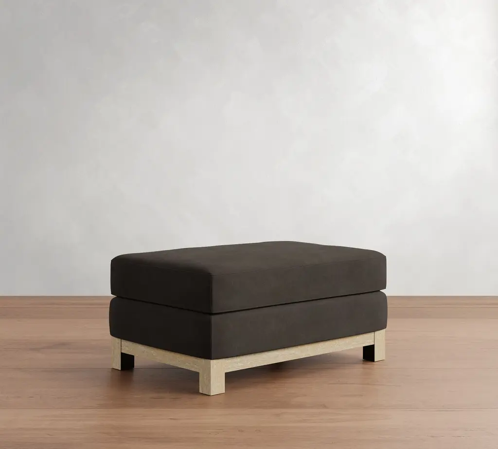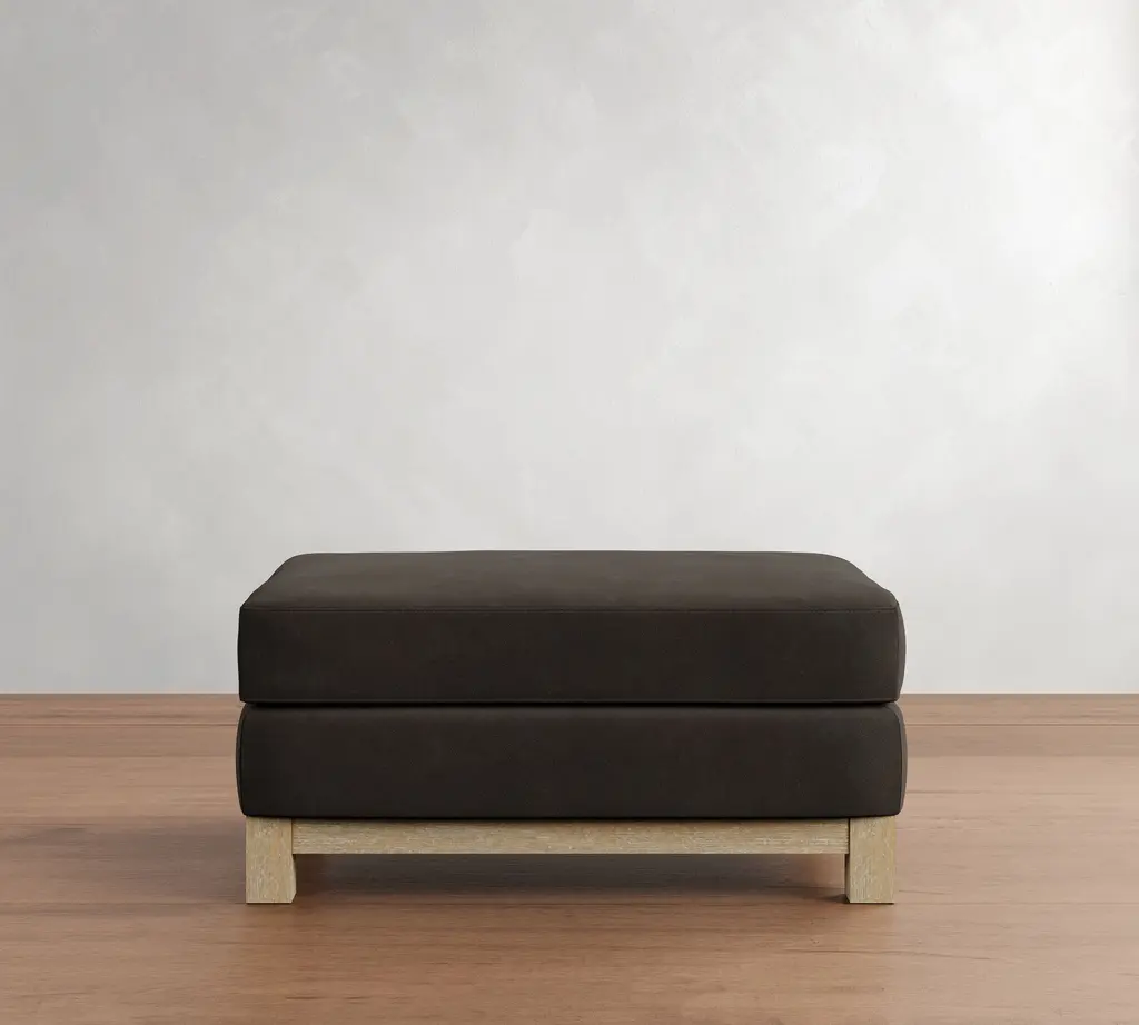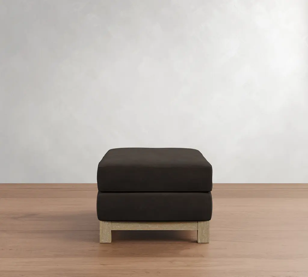 Superb comfort meets a simplified silhouette for a look that’s as refined as it is laid back. Our Jake Collection is defined by its legs—the wood base adds grounding texture and a relaxed feel. This ottoman is perfect for kicking up your feet for movie nights and doubles as extra seating when entertaining.